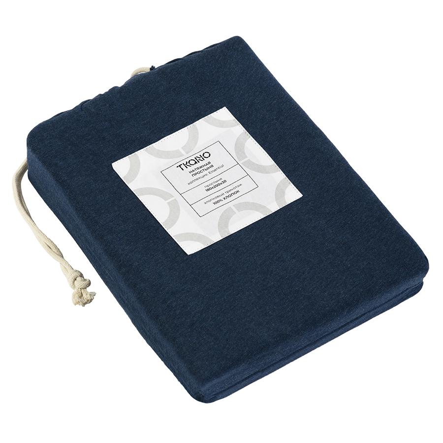Остальные предметы Tkano Простыня на резинке из хлопкового трикотажа темно-синего цвета из коллекции essential, 180х200х30 см арт. TK23-FS0008