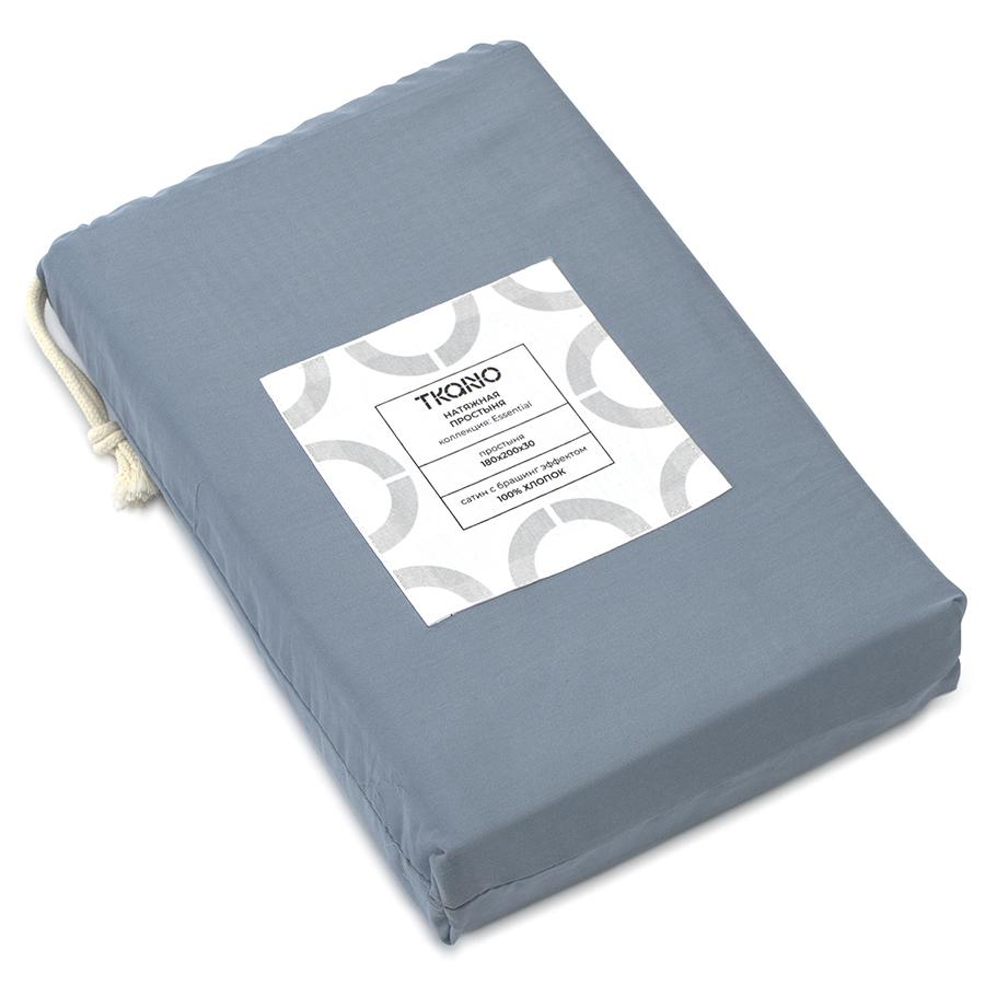 Остальные предметы Tkano Простыня на резинке из сатина джинсово-синего цвета с брашинг-эффектом из коллекции essential, 180х200х30 см арт. TK23-FS0004