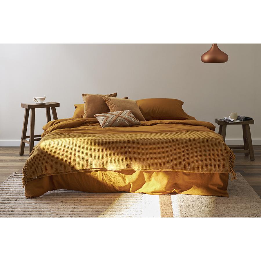 Простыня на резинке изо льна и хлопка цвета карри из коллекции Essential – стильное постельное белье высочайшего качества, которое подарит ощущение комфорта во время сна и привнесет в интерьер спальни природную элегантность. Особенности и преимущества: - Материал, из которого выполнено изделие, объединяет в себе мягкость хлопка и высокую прочность льна. - Ткань устойчива к износу и деформации, имеет приятную на ощупь фактуру, не вызывает аллергический реакций, не накапливает статическое электричество. - Резинка расположена по углам простыни, что обеспечивает ей хорошую посадку, а само изделие легче гладить и хранить. - Качественная отделка и прочные швы гарантируют постельному белью долгий срок службы и привлекательный вид даже после многократных стирок. Состав: лен, хлопок. Размер: 160х200х30 см. Плотность: поверхностная – 145 г/м2; линейная – 110 ТС. ! Максимальная температура стирки 30° C ! Гладить при максимальной температуре 150° C ! Барабанная сушка запрещена ! Не отбеливать ! Возможна сухая чистка