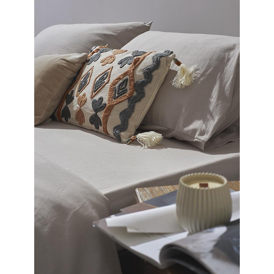 Простыня на резинке изо льна и хлопка серо-бежевого цвета из коллекции Essential – стильное постельное белье высочайшего качества, которое подарит ощущение комфорта во время сна и привнесет в интерьер спальни природную элегантность. Особенности и преимущества: - Материал, из которого выполнено изделие, объединяет в себе мягкость хлопка и высокую прочность льна. - Ткань устойчива к износу и деформации, имеет приятную на ощупь фактуру, не вызывает аллергический реакций, не накапливает статическое электричество. - Резинка расположена по углам простыни, что обеспечивает ей хорошую посадку, а само изделие легче гладить и хранить. - Качественная отделка и прочные швы гарантируют постельному белью долгий срок службы и привлекательный вид даже после многократных стирок. Состав: лен, хлопок. Размер: 160х200х30 см. Плотность: поверхностная – 145 г/м2; линейная – 110 ТС. ! Максимальная температура стирки 30° C ! Гладить при максимальной температуре 150° C ! Барабанная сушка запрещена ! Не отбеливать ! Возможна сухая чистка