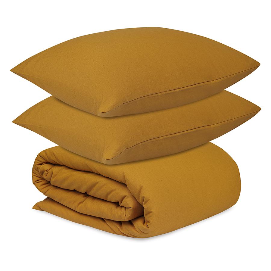 Комплект из двух наволочек и пододеяльника цвета карри из коллекции Essential – стильное постельное белье из натуральных материалов высочайшего качества, которое подарит ощущение комфорта во время сна и привнесет в интерьер спальни природную элегантность. Особенности и преимущества: - Материал, из которого выполнены изделия, объединяет в себе мягкость хлопка и высокую прочность льна. - Ткань устойчива к износу и деформации, имеет приятную на ощупь фактуру, не вызывает аллергический реакций, не накапливает статическое электричество. - Качественная отделка и прочные швы гарантируют постельному белью долгий срок службы и привлекательный вид даже после многократных стирок. Состав: лен, хлопок. Размер пододеяльника: 200х220 см. Размер наволочек: 50х70 см. Плотность: поверхностная – 145 г/м2; линейная – 110 ТС. ! Максимальная температура стирки 30° C ! Гладить при максимальной температуре 150° C ! Барабанная сушка запрещена ! Не отбеливать ! Возможна сухая чистка
