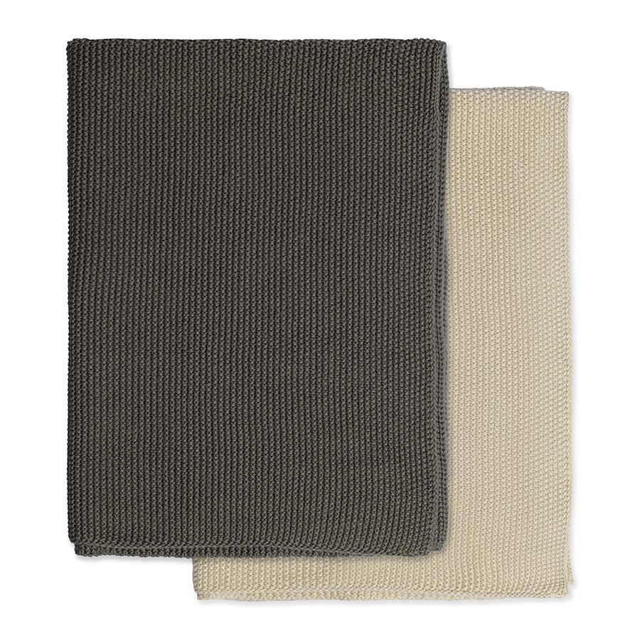 Остальные предметы Tkano Набор из двух кухонных вязаных полотенец из коллекции essential, темно-серое/бежевое арт. TK24-TT0002