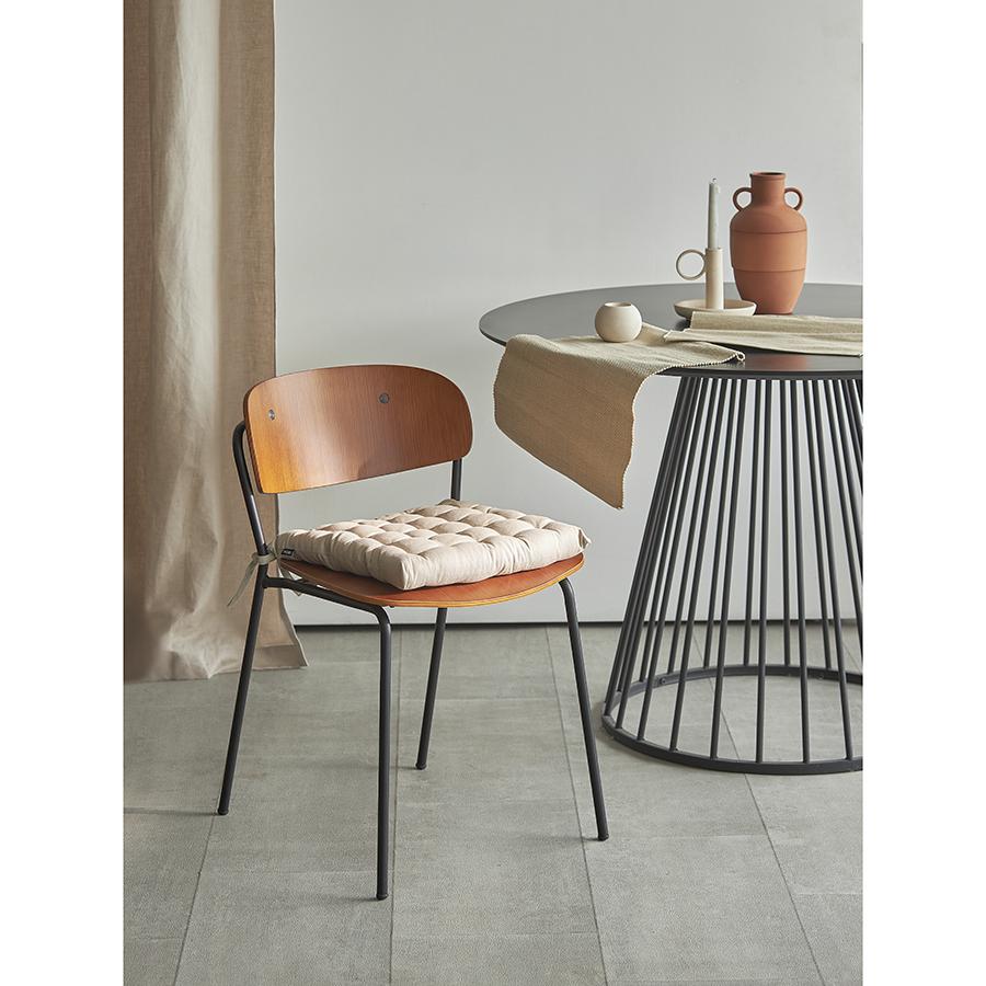 Подушка бежевого цвета из коллекции Essential станет отличным дополнением к вашей кухонной мебели. Ее можно использовать в качестве мягкой накладки на деревянные или металлические стулья, чтобы сделать их жесткую поверхность более удобной для сидения. Подушка легко фиксируется на ножках мебели с помощью специальных завязок. Однотонное изделие в лаконичном дизайне органично вписывается в любой современный интерьер. Чехол подушки изготовлен из экологичного и долговечного 100% хлопка. В качестве наполнителя используется плотный полиэстер, который позволяет изделию сохранять первоначальную форму на протяжении всего срока службы. Основной материал – 100% хлопок, наполнитель – 100% полиэстер. Плотность ткани: 215 г/м2. Размер: 35х35х4 см. ! Максимальная температура стирки 40° C ! Гладить при максимальной температуре 150° C ! Возможна барабанная сушка при низкой температуре ! Не отбеливать ! Возможна сухая чистка