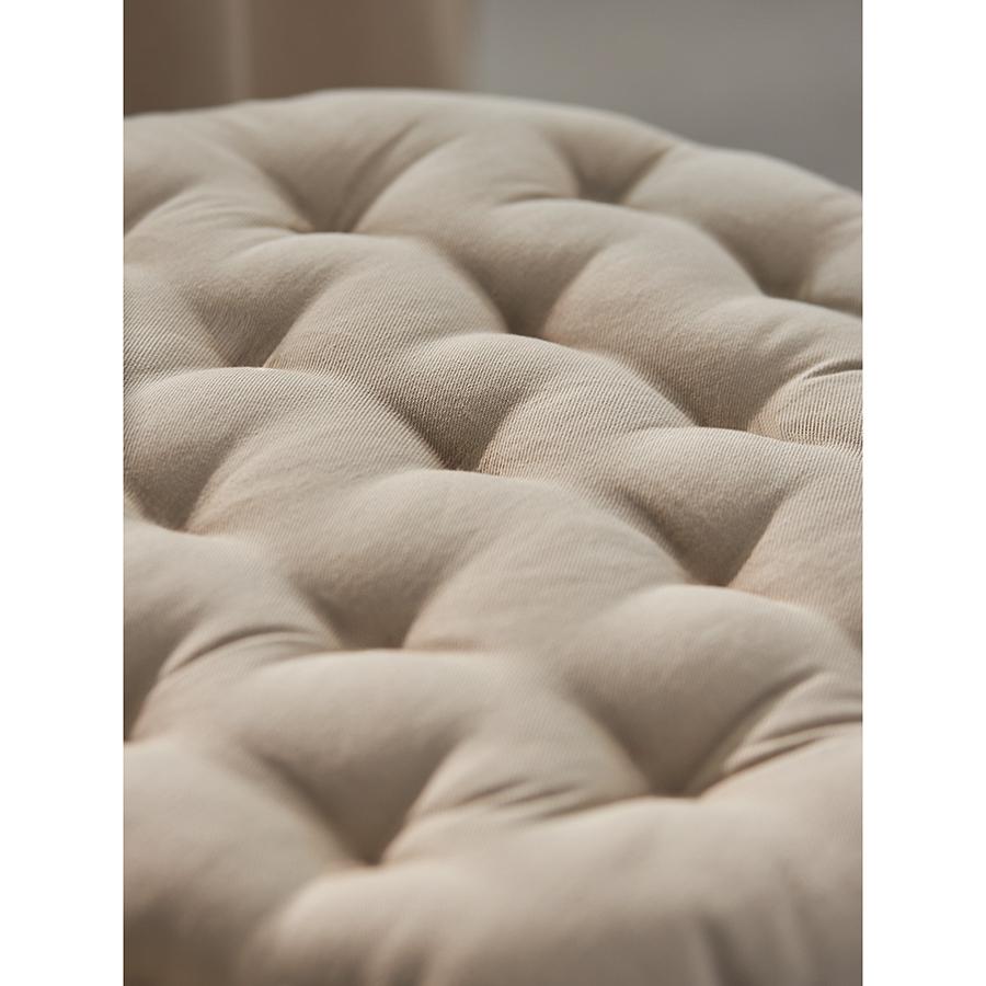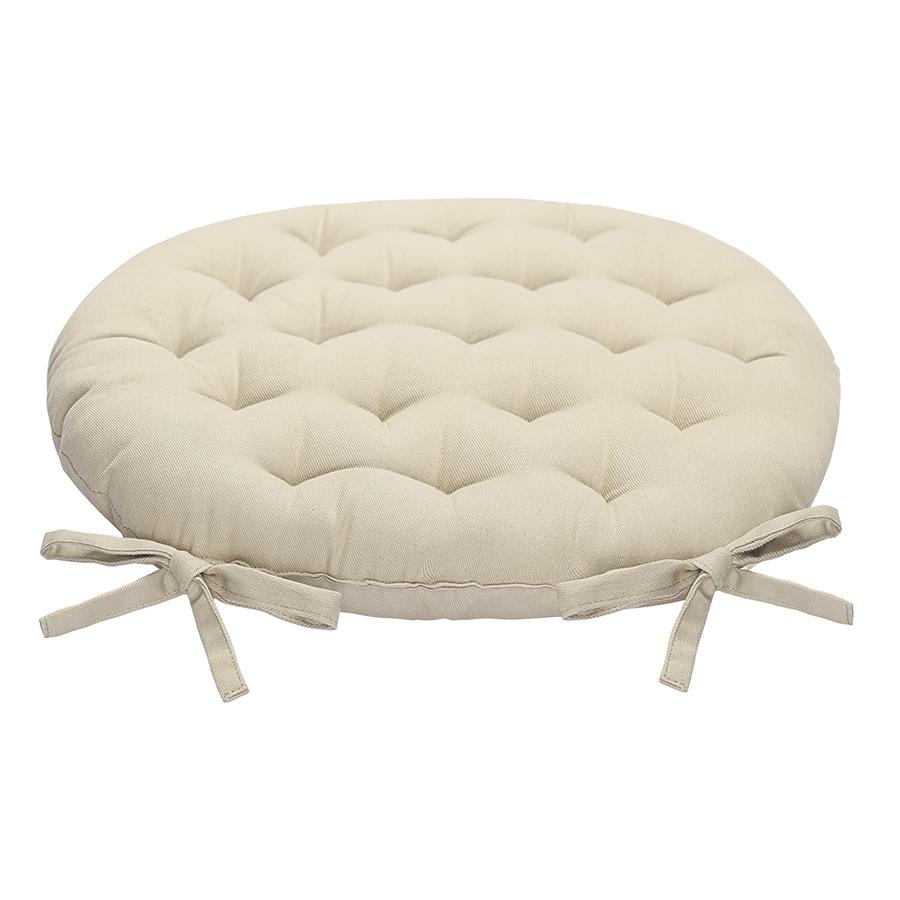 Подушка круглая бежевого цвета из коллекции Essential станет отличным дополнением к вашей кухонной мебели. Ее можно использовать в качестве мягкой накладки на деревянные или металлические стулья, чтобы сделать их жесткую поверхность более удобной для сидения. Подушка легко фиксируется на ножках мебели с помощью специальных завязок. Однотонное изделие в лаконичном дизайне органично вписывается в любой современный интерьер. Чехол подушки изготовлен из экологичного и долговечного 100% хлопка. В качестве наполнителя используется плотный полиэстер, который позволяет изделию сохранять первоначальную форму на протяжении всего срока службы. Основной материал – 100% хлопок, наполнитель – 100% полиэстер. Диаметр: 35 см. ! Максимальная температура стирки 40° C ! Гладить при максимальной температуре 150° C ! Возможна барабанная сушка при низкой температуре ! Не отбеливать ! Возможна сухая чистка