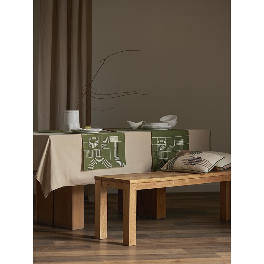 Дорожка на стол Cave maze из коллекции Ethnic превратит обыденную сервировку в праздничную. Благодаря спокойной цветовой гамме она легко сочетается с посудой и салфетками любых оттенков. Текстильное изделие можно размещать поверх скатерти или непосредственно на столешнице. Особенности и преимущества: - Выполнена из экологичного, прочного, устойчивого к износу и деформации 100% хлопка. - Может использоваться для повседневной и праздничной сервировки, в том числе и для обозначения мест при рассадке гостей. - Благодаря дизайну в этно-стиле с элементами в виде вышивки привносит в сервировку интересный акцент. Материал: 100% хлопок. Размеры: 45х150 см. ! Стирка запрещена ! Гладить при максимальной температуре 110° C ! Барабанная сушка запрещена ! Не отбеливать ! Возможна сухая чистка