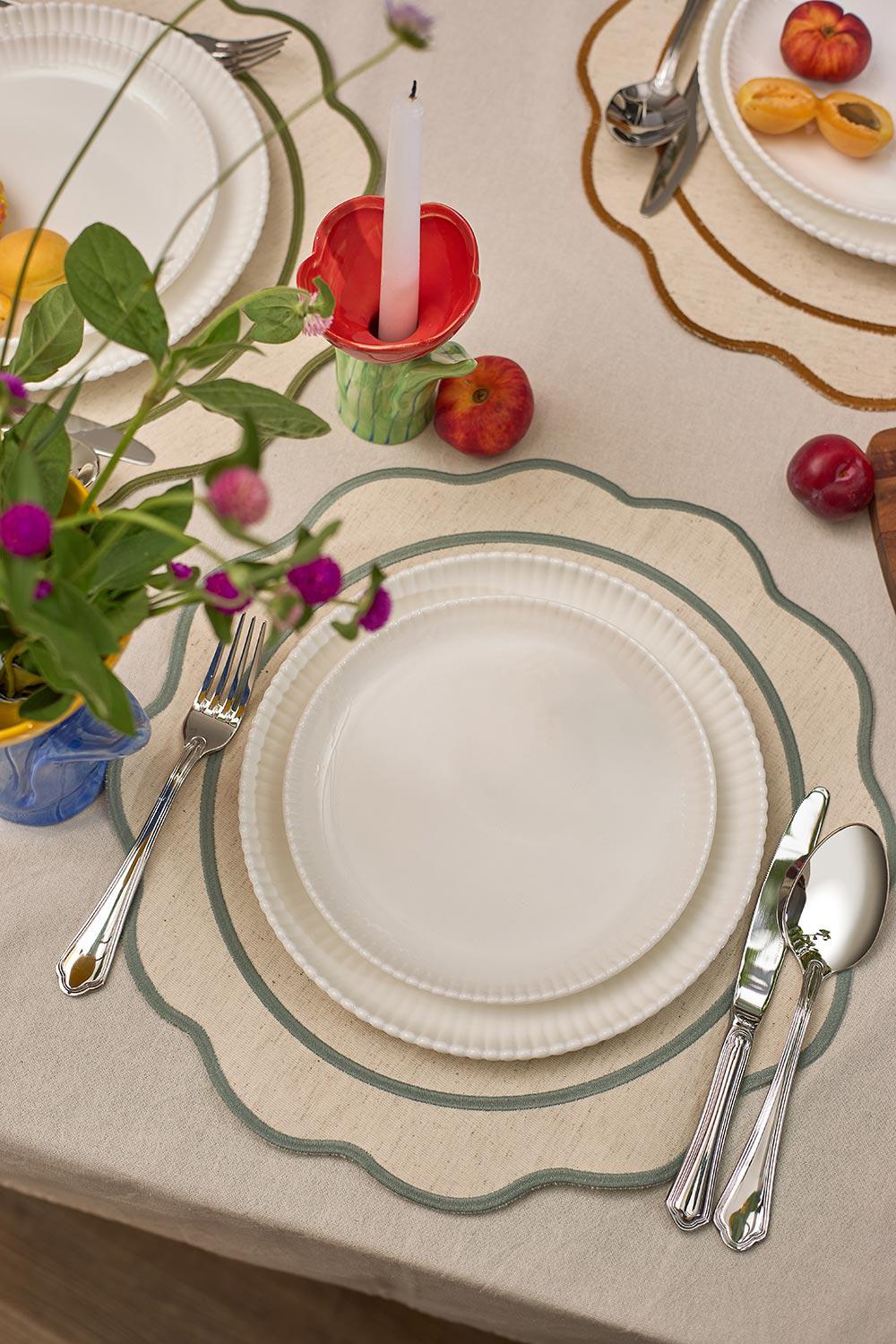 Салфетка под приборы Anemone из коллекции Trendy Ruffles с кантом серого цвета сделает любую сервировку стильной, позволив экспериментировать с текстурами и формами. Текстиль с волнистой отделкой, напоминающей изящные раковины морских гребешков, стал ярким элементом стиля Ар Деко – и сейчас возвращается в моду, появляясь в самых актуальных интерьерных решениях. Особенности и преимущества: - Выполнена из экологичных и долговечных материалов – смеси хлопка и льна. - Имеет трендовый дизайн, что позволяет использовать ее в качестве акцента. - Выдерживает многократные стирки, сохраняя привлекательный вид. Материалы: 90% хлопок, 10% лён. Диаметр: 38 см. ! Деликатная стирка при температуре 30° C ! Гладить при максимальной температуре 110° C ! Сушить в тени (без попадания прямых солнечных лучей) ! Не отбеливать ! Сухая чистка запрещена