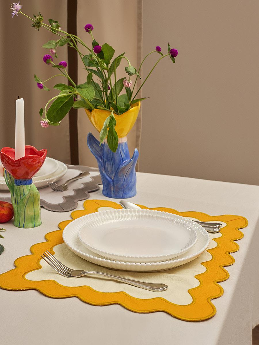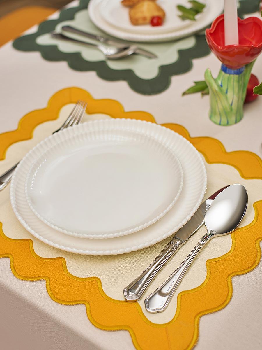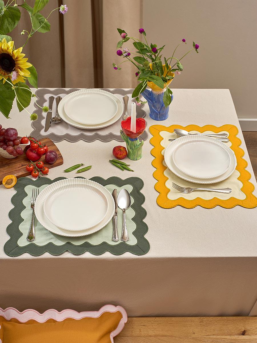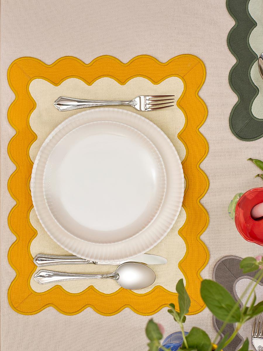 Салфетка под приборы с контрастным кантом горчичного цвета из коллекции Trendy Ruffles сделает любую сервировку стильной, позволив экспериментировать с текстурами и формами. Текстиль с волнистой отделкой, напоминающей изящные раковины морских гребешков, стал ярким элементом стиля Ар Деко – и сейчас возвращается в моду, появляясь в самых актуальных интерьерных решениях. Особенности и преимущества: - Выполнена из экологичного, устойчивого к износу и долговечного 100% хлопка. - Имеет трендовый дизайн, что позволяет использовать ее в качестве акцента. - Выдерживает многократные стирки, сохраняя привлекательный вид. Материал: 100% хлопок. Плотность: 192 г/м2. Размеры: 35х45 см. ! Деликатная стирка при температуре 30° C ! Гладить при максимальной температуре 110° C ! Возможна барабанная сушка при низкой температуре ! Не отбеливать ! Сухая чистка запрещена