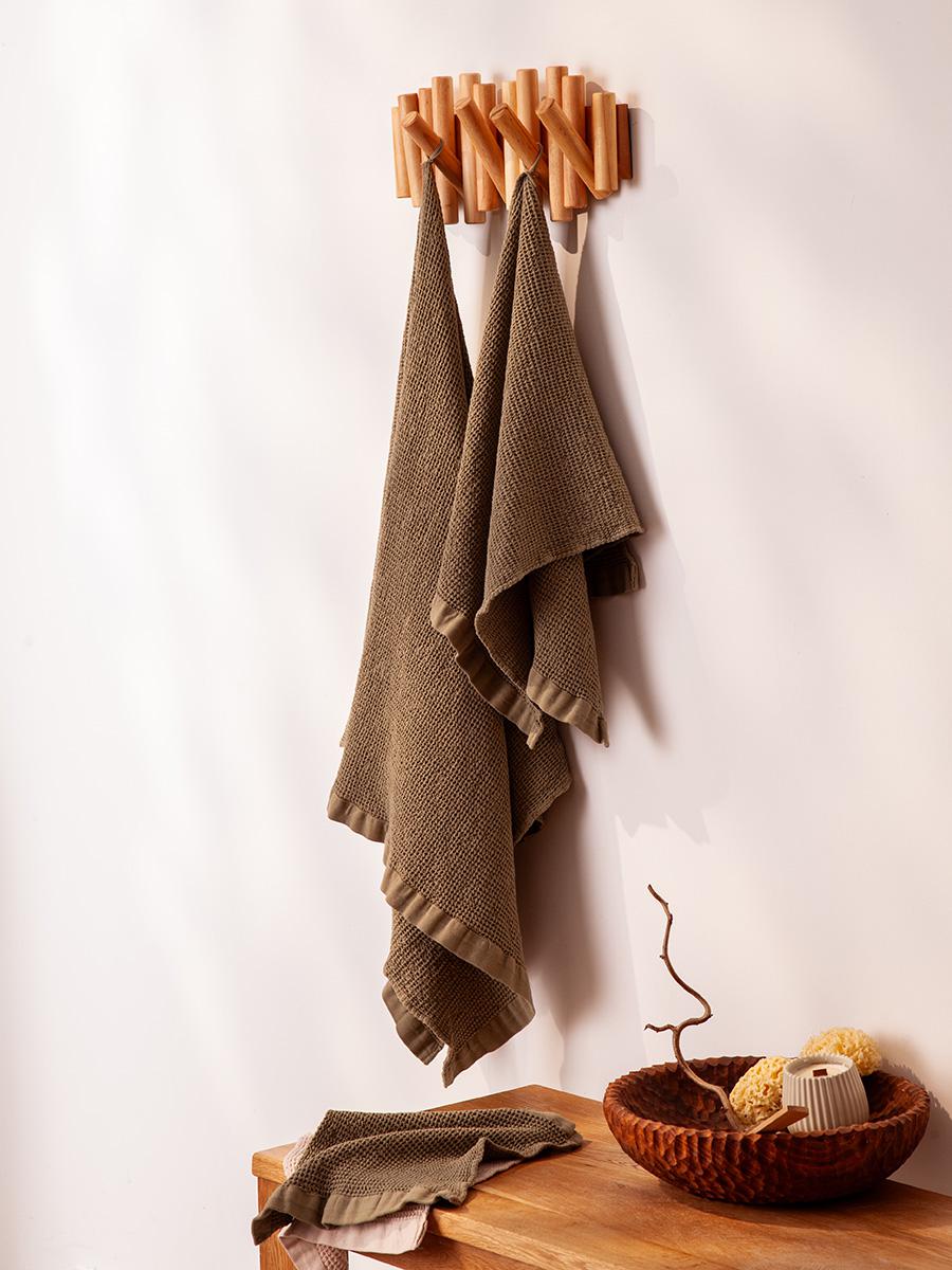 Полотенце для рук из умягченной вафли цвета хаки из коллекции Essential подарит ощущение комфорта после водных процедур, а также украсит интерьер вашей ванной комнаты. Особенности и преимущества: - Натуральный хлопок – экологичный, износостойкий материал, который хорошо впитывает влагу и не вызывает аллергических реакций. - Ткань прошла специальную обработку для достижения особой мягкости – полотенце приятное на ощупь и не травмирует кожу. - Благодаря вафельному плетению материал хорошо пропускает воздух, быстро сохнет и отличается легкостью. - Полотенце нейтрального оттенка прекрасно вписывается в интерьер в любой цветовой гамме. Материал: 100% xлопок. Плотность: 390 г/м2. Размер: 50х90 см. ! Максимальная температура стирки 40° C ! ! Гладить при максимальной температуре 110° C ! Барабанная сушка запрещена ! Не отбеливать ! Сухая чистка запрещена