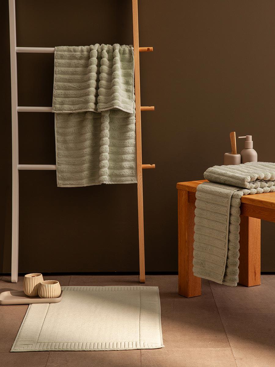 Коврик мятного цвета с фактурным бортиком из коллекции Essential – стильное дополнение к интерьеру современной ванной комнаты. Выполненный в нейтральном оттенке, он прекрасно сочетается с отделкой и мебелью в любых тонах, создавая ощущение комфорта, уюта и чистоты. Особенности и преимущества: - Коврик из 100% хлопка хорошо пропускает воздух, благодаря чему быстро сохнет, предотвращая образование плесени и неприятных запахов. - Натуральный материал обеспечивает приятные тактильные ощущения, создавая комфорт при выходе из ванны или душа. - На обратной стороне коврика предусмотрены специальные протекторы, предотвращающие скольжение. - Лаконичный дизайн и нейтральный оттенок позволяют легко интегрировать коврик из коллекции Essential в интерьер с любым оформлением. Материал: 100% хлопок. Размеры: 50x80 см. Плотность: 850 г/м2. ! Максимальная температура стирки 40° C ! ! Гладить при максимальной температуре 110° C ! Барабанная сушка запрещена ! Не отбеливать ! Сухая чистка запрещена