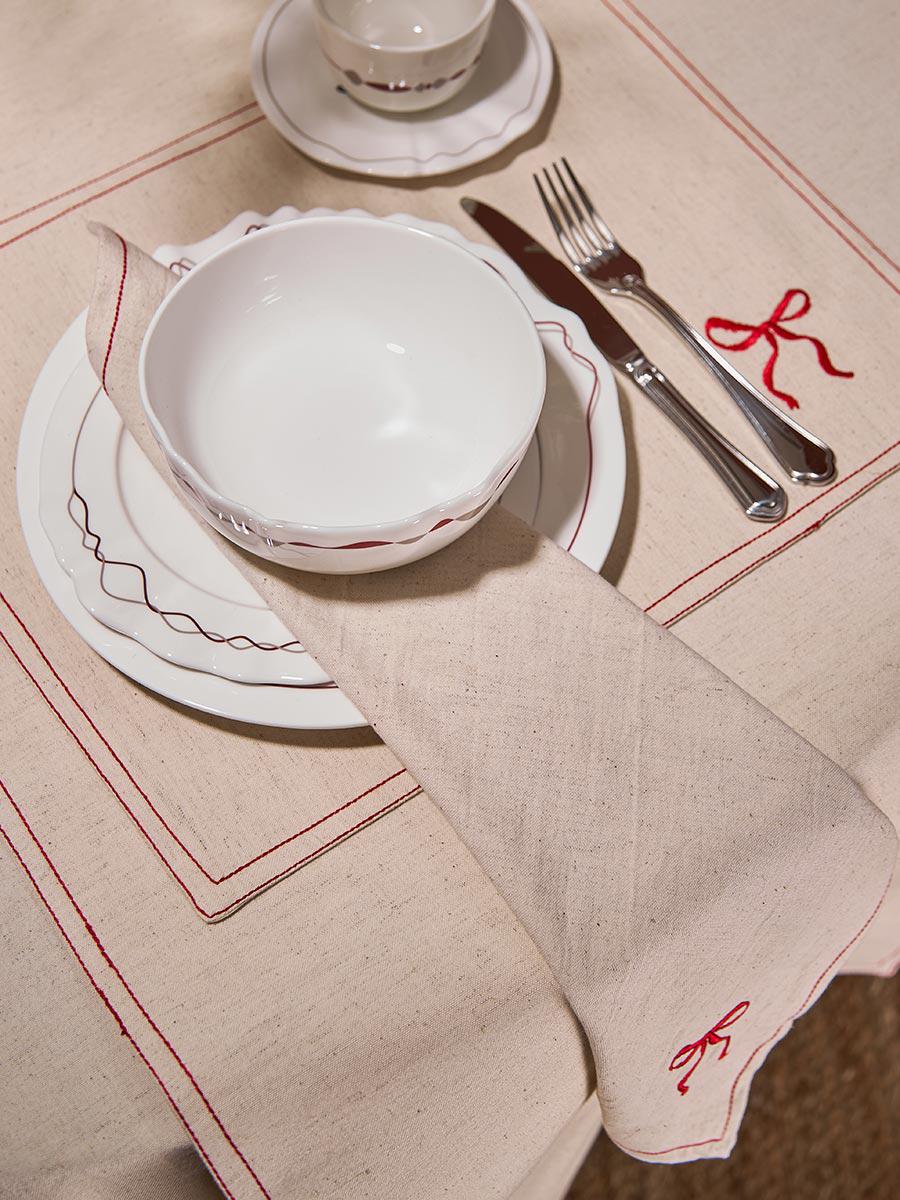 Добавьте нотки элегантности в сервировку с помощью дорожки на стол Fancy Bows из коллекции Essential. Этот текстильный акцент идеально подходит как для повседневных завтраков, обедов и ужинов в кругу семьи, так и для особых случаев, когда хочется подчеркнуть важность момента. Особенности и преимущества: - Комбинация хлопка и льна делает ткань приятной на ощупь, устойчивой к износу и простой в уходе. - Бежевый оттенок легко сочетается с любой посудой и текстилем, позволяя экспериментировать с цветом. - Акцент в виде бантиков придает дизайну легкость и игривость, но не перегружает его. - Дорожка может использоваться как самостоятельный декоративный элемент или в паре со скатертью для многослойной сервировки. Состав: 90% хлопок, 10% лен. Плотность: 350 г/м2. Размеры: 45х150 см. ! Деликатная стирка при температуре 30° C ! Сушить в тени ! Гладить при максимальной температуре 150° C ! Барабанная сушка запрещена ! Не отбеливать ! Сухая чистка запрещена