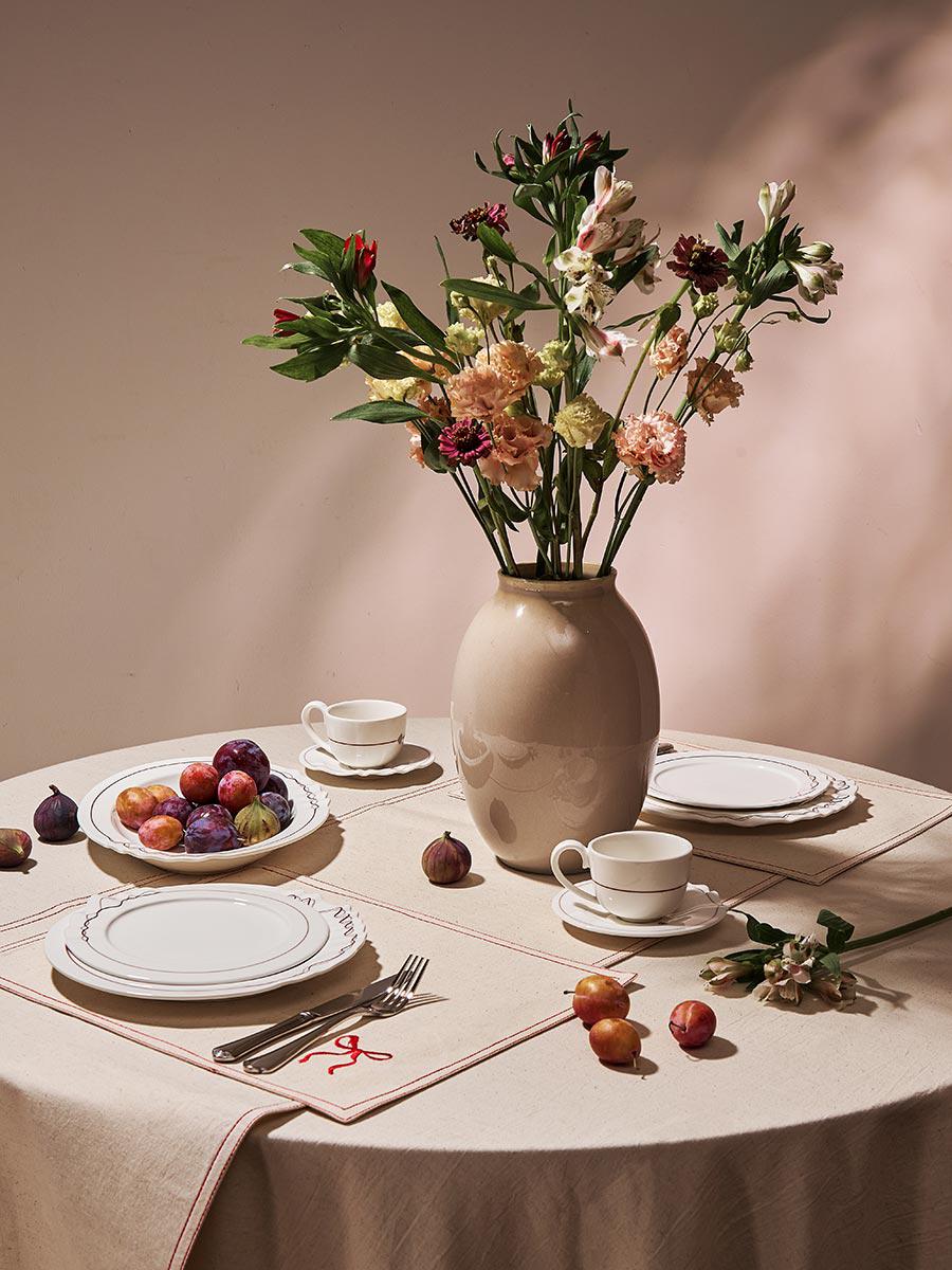 Скатерть Fancy Bows из коллекции Essential – не просто элемент сервировки, а часть атмосферы. Ее мягкий оттенок и лаконичный дизайн с легкими декоративными акцентами создают ощущение уюта и продуманной гармонии. Она идеально подойдет для будничных обедов, уютных семейных вечеров, а также для особых моментов, где важны не только блюда, но и детали. Особенности и преимущества: - Скатерть подходит для квадратных и круглых столов, защищает столешницу от загрязнений, выглядит стильно и помогает создать уютную атмосферу. - Комбинация хлопка и льна делает ткань приятной на ощупь, устойчивой к износу и простой в уходе. - Спокойный бежевый оттенок легко сочетается с любой посудой и текстилем, позволяя экспериментировать с цветом. - Акцент в виде бантиков придает дизайну легкость и игривость, но не перегружает его. Состав: 90% хлопок, 10% лен. Плотность: 180 г/м2. Размеры: 180х180 см. ! Деликатная стирка при температуре 30° C ! Сушить в тени ! Гладить при максимальной температуре 150° C ! Барабанная сушка запрещена ! Не отбеливать ! Сухая чистка запрещена