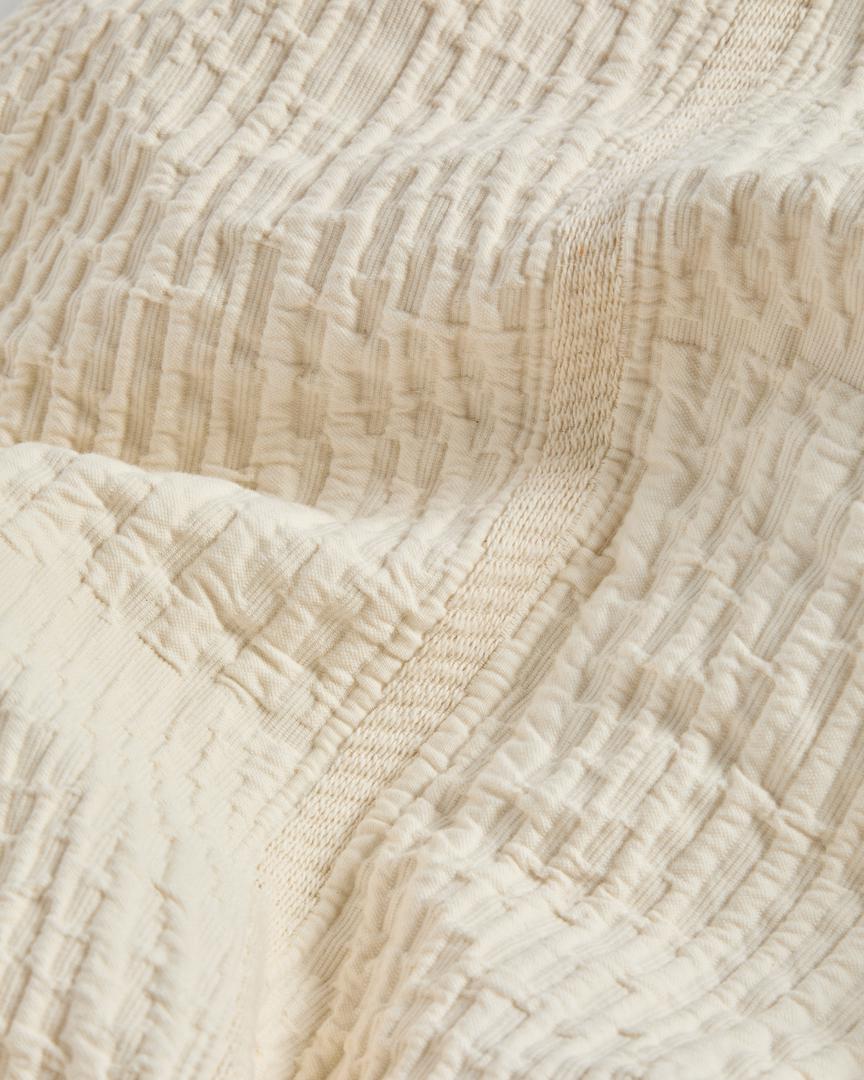 Это покрывало изготовлено из 100% хлопка и имеет фактурный рисунок. Рельефные полоски добавят изысканности и объёма любой комнате. Качество ткани ощущается на ощупь, она отличается исключительной прочностью и долговечностью, идеально подходит для повседневного использования. Покрывало производится в Португалии, стране, известной своими давними традициями производства высококачественного текстиля.