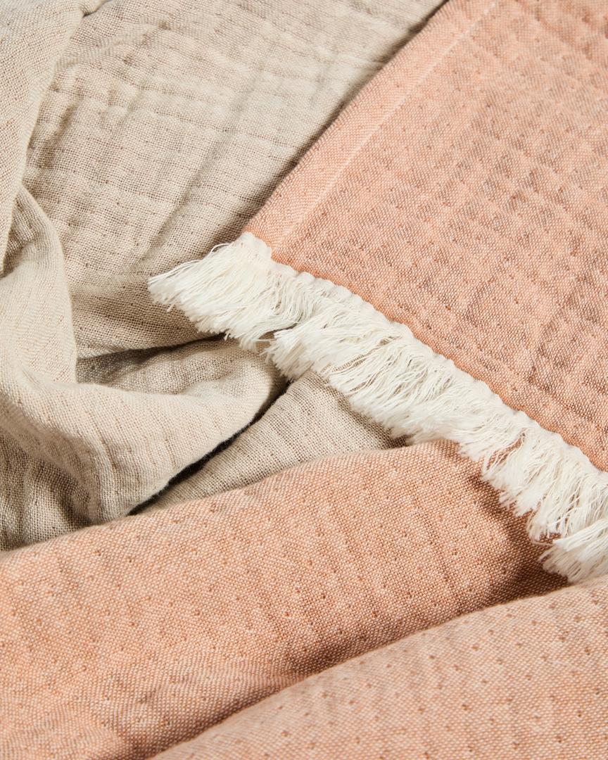 Плед Nafine изготовлен в Португалии, стране, известной своими давними традициями производства высококачественного текстиля. Изготовленный из 100% хлопкового муслина, он сочетает в себе двухцветный дизайн с лёгкой и мягкой текстурой. Бахрома на концах добавляет декоративности и современный штрих. Благодаря хлопковому составу плед обеспечивает отличную воздухопроницаемость и комфорт в любое время года.