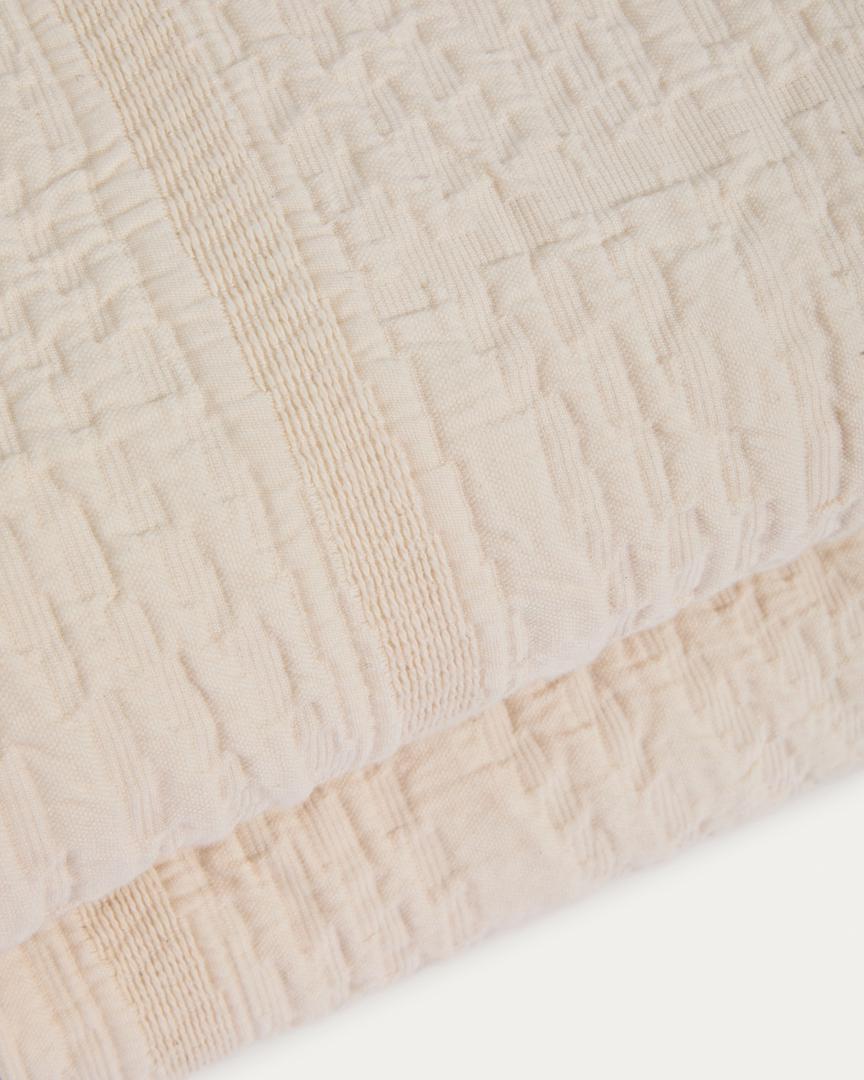 Это покрывало из 100% хлопкового шенилла выделяется двусторонним жаккардовым узором «зебра». Его мягкая текстура идеально подходит как для межсезонья, так и в качестве постельного белья круглый год. Благодаря внушительным размерам 240 x 260 см, оно идеально подходит для кроватей шириной 150 и 160 см, обеспечивая превосходное покрытие и равномерную драпировку с обеих сторон. Ткань шенилл, полностью состоящая из хлопка, сочетает в себе лёгкость и тепло, а также приятна на ощупь. Двусторонний дизайн позволяет легко менять покрывало.