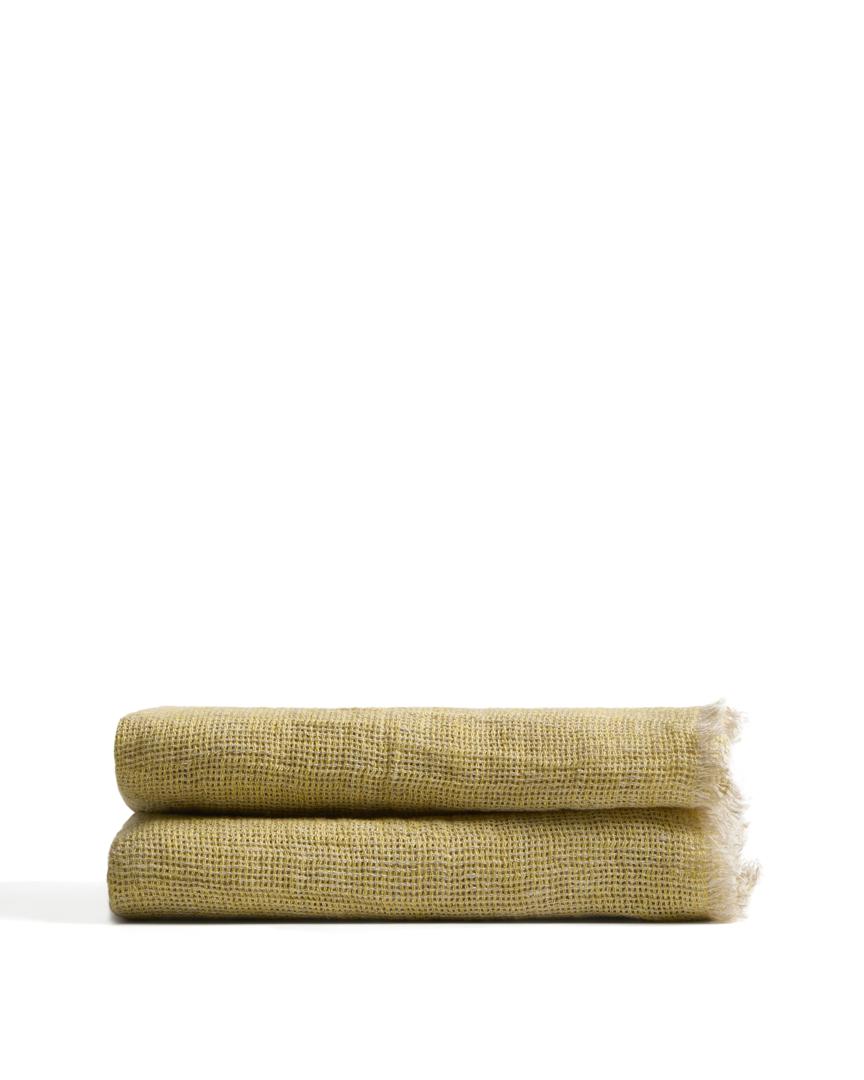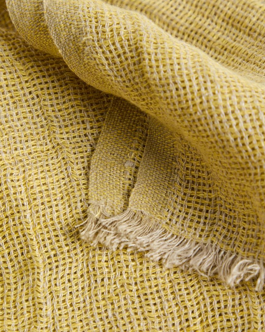 Плед Aderin изготовлен из льна и отличается выраженной текстурой и приятной на ощупь тканью. Отделка имеет незначительные вариации, характерные для ручной работы, которые добавляют нюансы и делают каждое изделие уникальным. Желтый цвет создает мягкий акцент, который легко вписывается в пространство и подходит для повседневного использования в качестве легкого покрытия на диване или кровати.