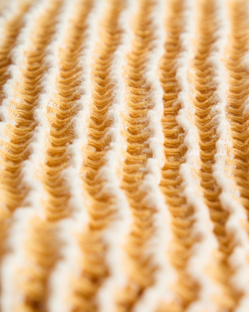 Плед Lideba изготовлен из хлопка, имеет полосатую, объемную ткань, обеспечивающую приятное и обволакивающее ощущение. Двухцветная отделка создает контраст и подчеркивает рисунок на ткани. Изготовленный в Португалии, стране с давними текстильными традициями, этот плед выделяется качеством изготовления и вниманием к деталям.