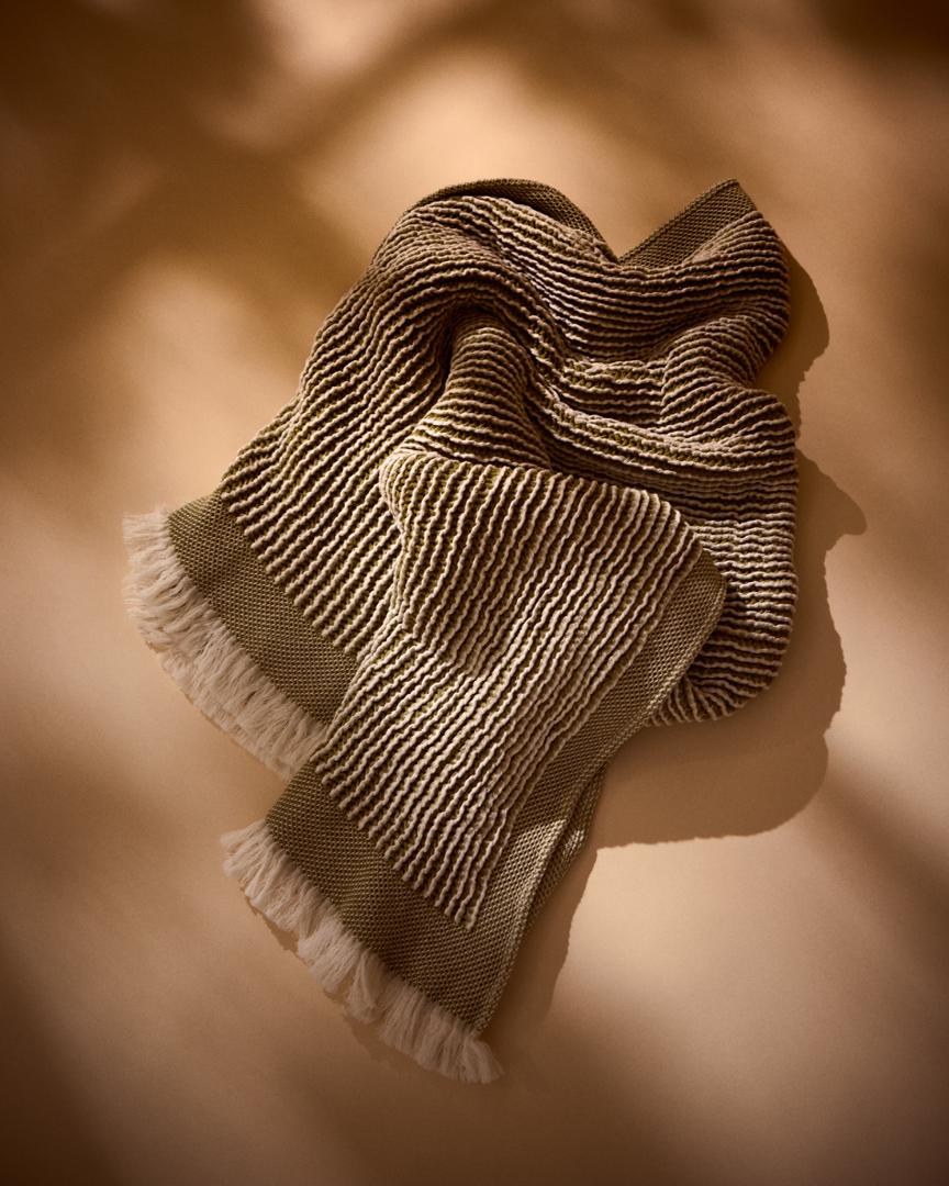 Плед Lideba изготовлен из хлопка, имеет полосатую, объемную ткань, обеспечивающую приятное и обволакивающее ощущение. Двухцветная отделка создает контраст и подчеркивает рисунок на ткани. Изготовленный в Португалии, стране с давними текстильными традициями, этот плед выделяется качеством изготовления и вниманием к деталям.