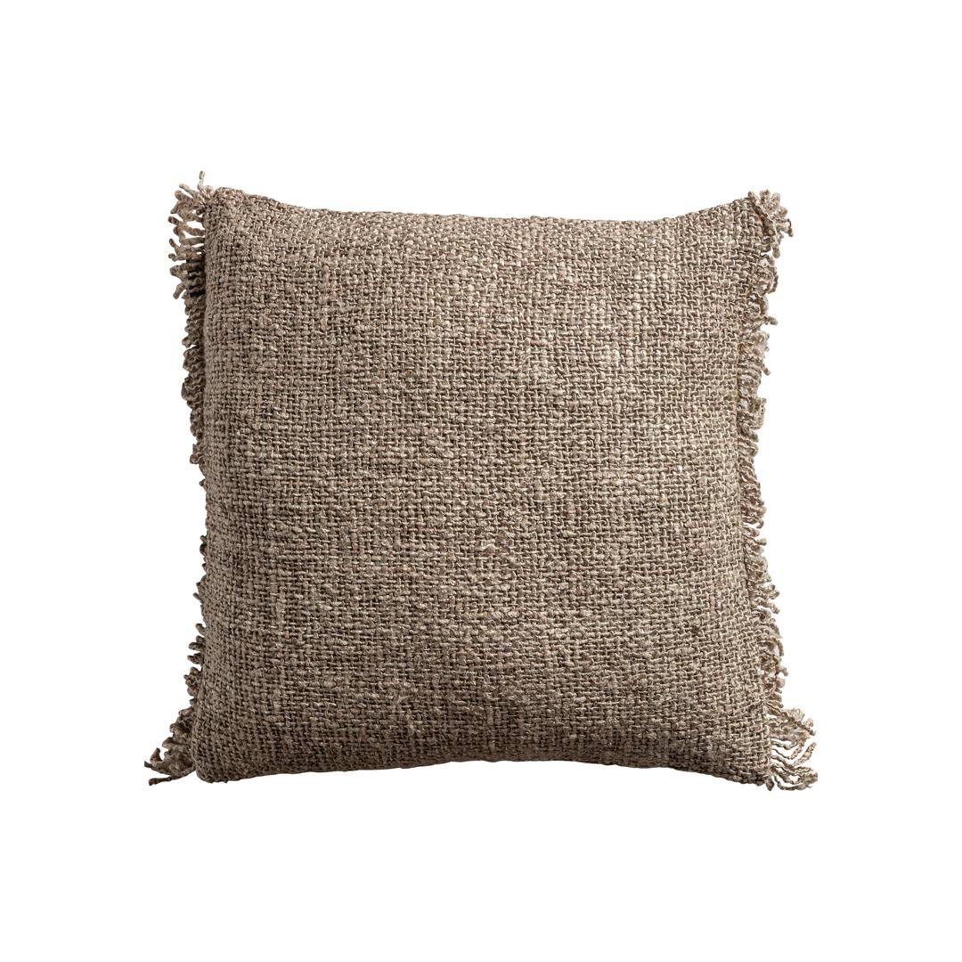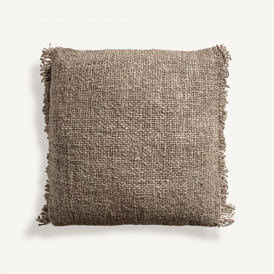 Подушка Edgar в классическом стиле, выполнена из бежевого хлопка в сочетании с коричневым льном и синтетической ватой. Съемное изделие.