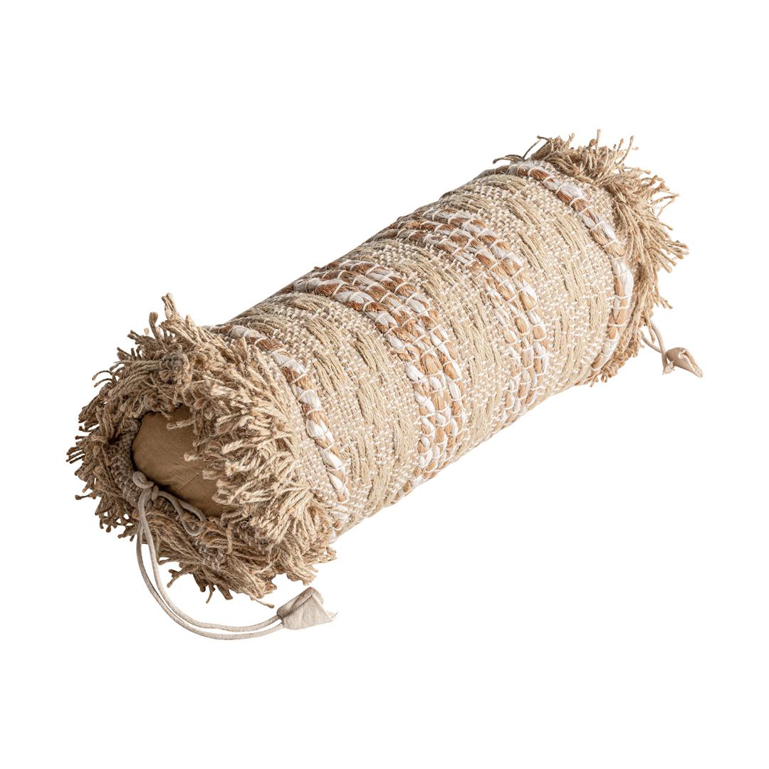 Подушка-gleishe в стиле бохо, выполнена из светло-коричневого хлопка. Съемное изделие.