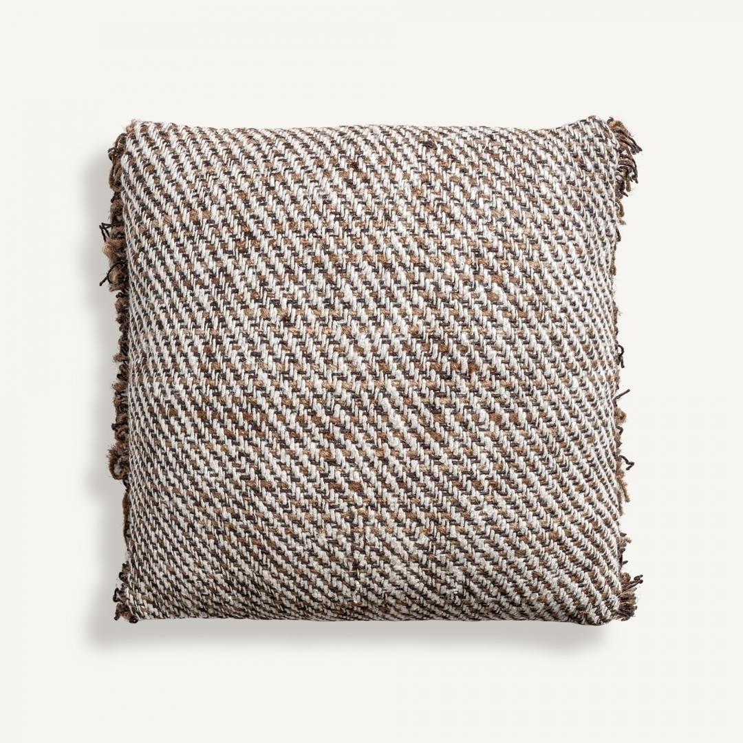 Подушка-BARUCH в стиле бохо, выполнена из хлопка коричневых тонов с пятнистой отделкой в сочетании с вискозой и синтепоном. Съемное изделие.