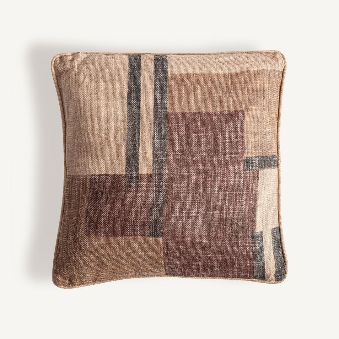 Классическая подушка Geb из бежевого джута в сочетании с коричневым натуральным волокном. Чехол съёмный. Ширина: 45 см, Глубина: 20 см, Высота: 45 см