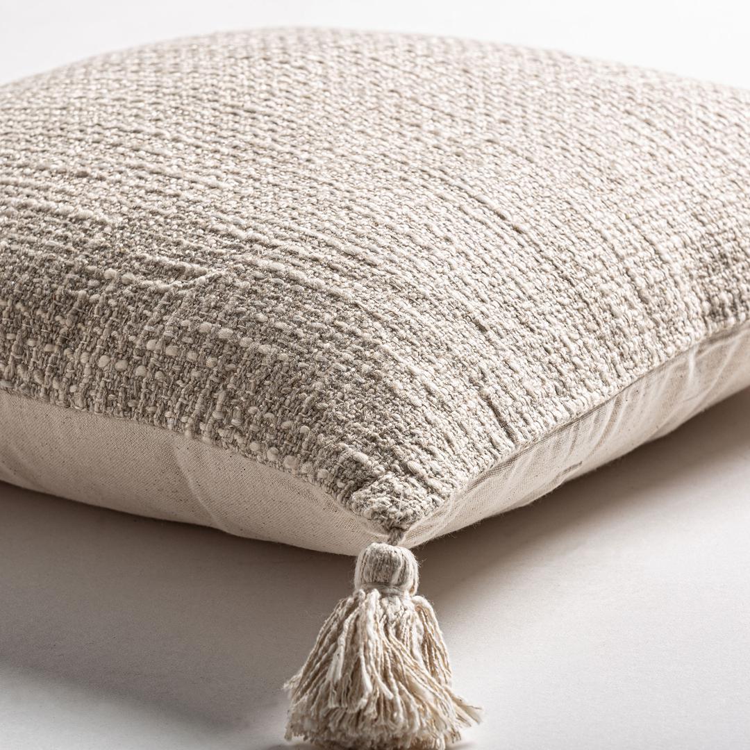 Подушка Ander от VICAL выделяется своим провансальским стилем и мягкой текстурой из бежевого льна в сочетании с полиэстером. Декоративные кисточки добавляют естественности и уюта, делая ее идеальным дополнением к спокойным и светлым помещениям. Ширина: 45 см, Глубина: 10 см, Высота: 45 см