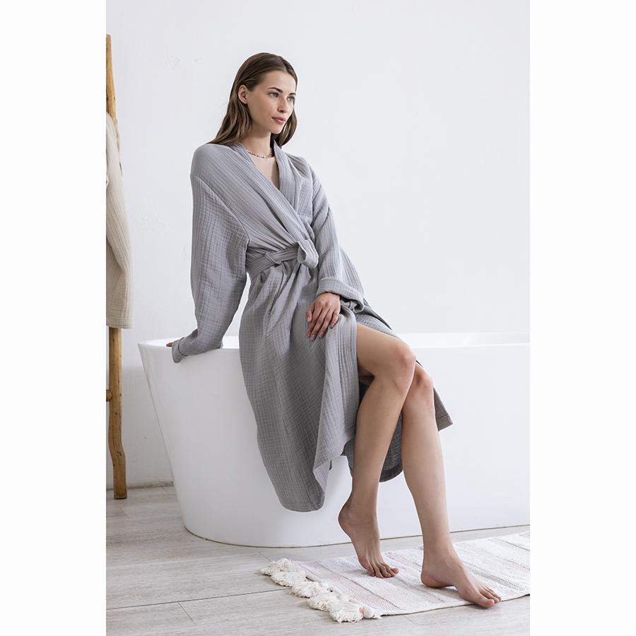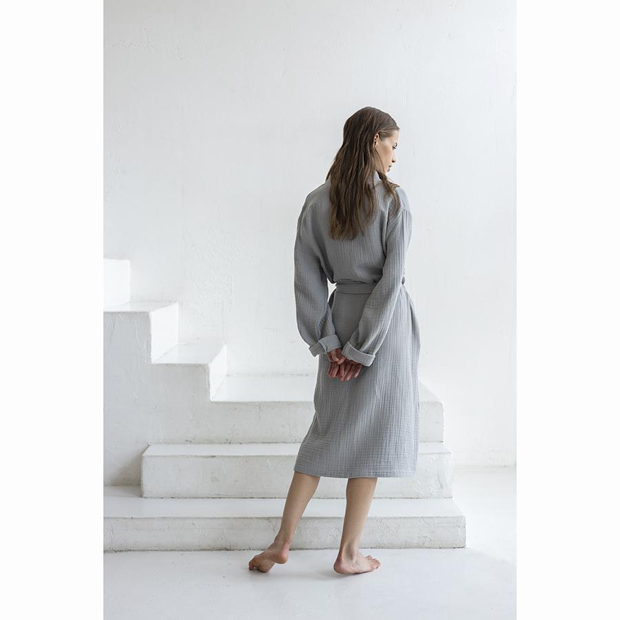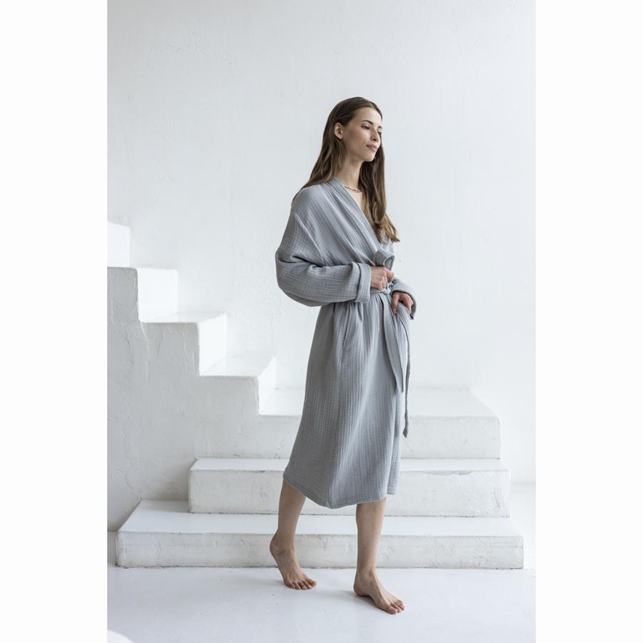 Одежда Tkano Халат из многослойного муслина серого цвета из коллекции essential, размер m арт. TK23-BR0008