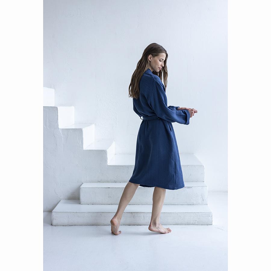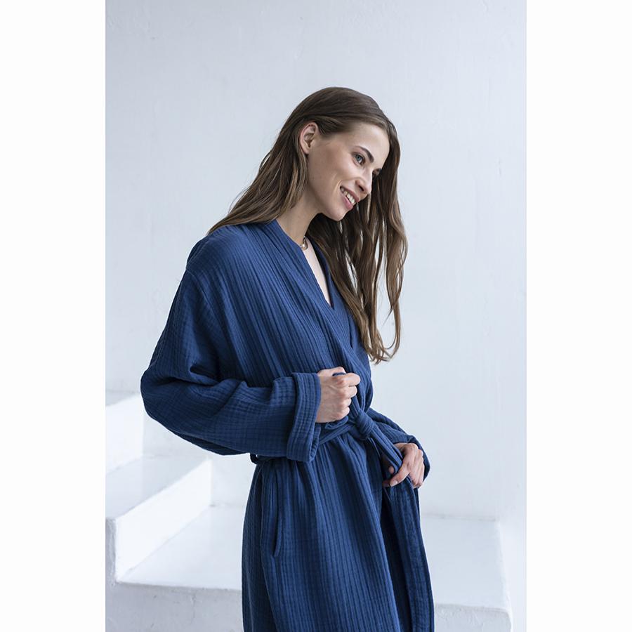 Одежда Tkano Халат из многослойного муслина темно-синего цвета из коллекции essential, размер s арт. TK23-BR0004
