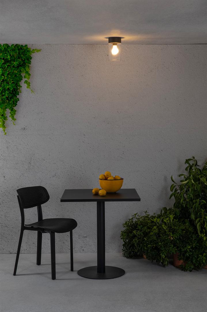 KILA — это коллекция наружного освещения из алюминия и стекла. Его дизайн идеально отделяет серую структуру полупрозрачного рассеивателя, позволяет видеть лампочку. Этот темно-серый потолочный светильник идеально подходит для входов, веранд и террас.