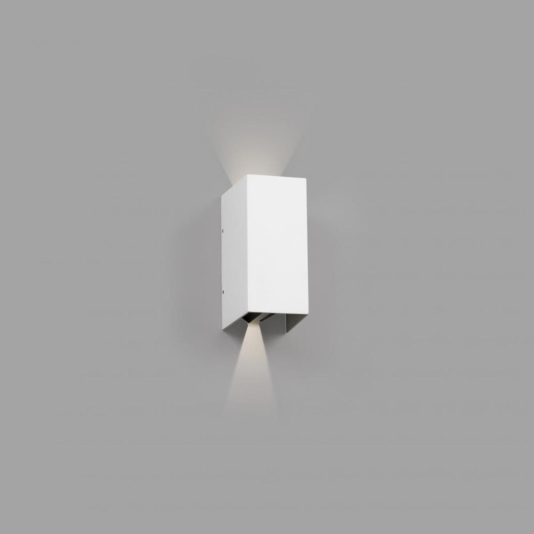 Белый настенный светильник для наружного освещения из литого алюминия и прозрачного стекла. Источник света - HIGH POWER LED 6W 3000K. Этот настенный светильник имеет направляющие ребра, которые позволяют управлять световым лучом для достижения функционального, но также и декоративного освещения .