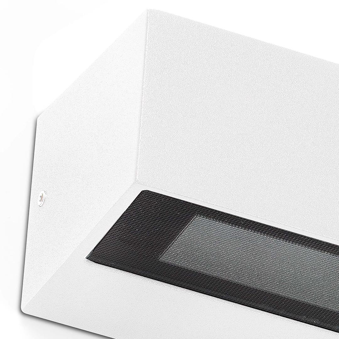 DORO - настенный светильник для наружного освещения из алюминия со стеклянным диффузором. Этот белый светодиодный настенный светильник имеет степень защиты IP65, что обеспечивает высокую защиту от дождя и твердых тел. Свет проецируется с обеих сторон. Версия 20Вт.