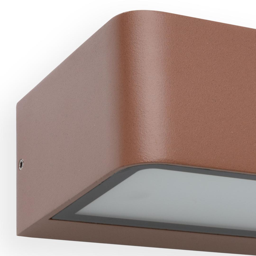 TAKUA - настенный светильник с покрытием коричневого оксида для наружного освещения из алюминия и стеклянного диффузора. Этот светодиодный настенный светильник имеет степень защиты IP65, что обеспечивает высокую защиту от дождя и твердых тел.
