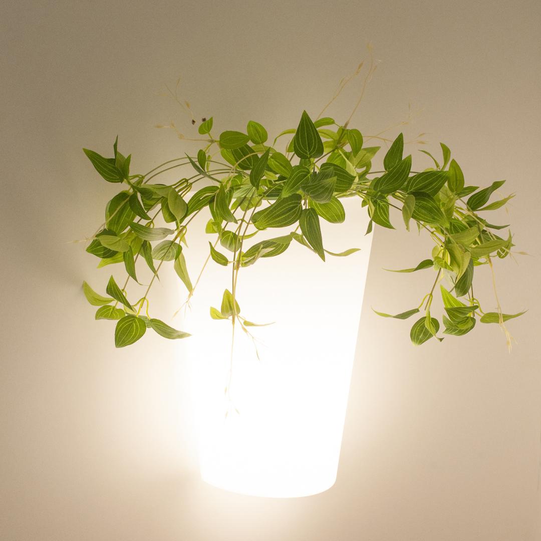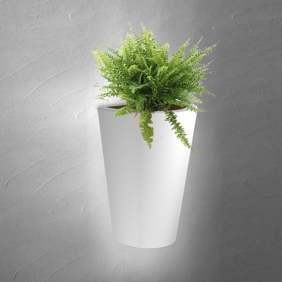 Необыкновенный уличный настенный светильник Teja с конусным плафоном, выполненным из пластика белого цвета.