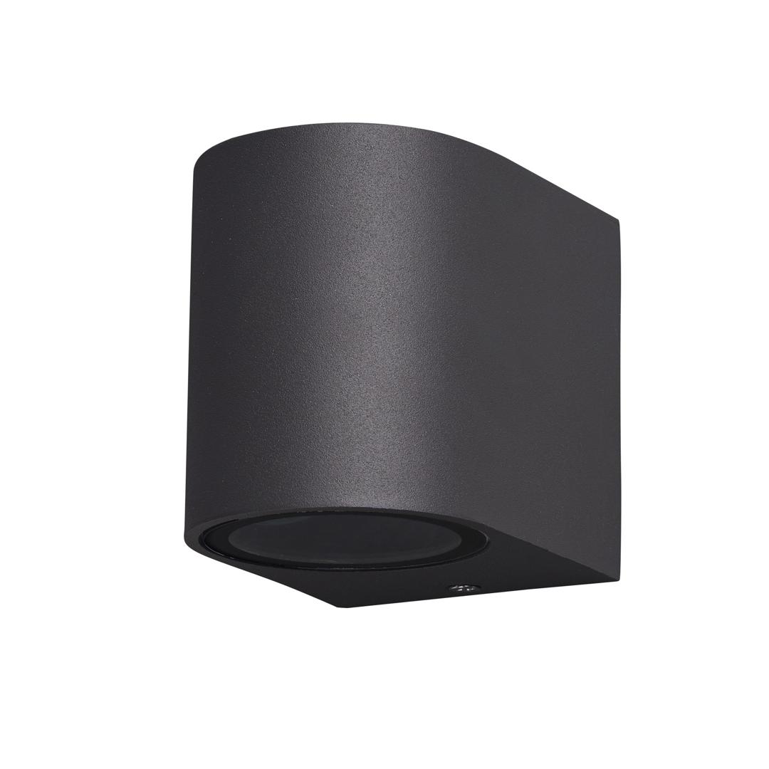 Светодиодный настенный светильник Kandanchu, выполненный из алюминия с защитным стеклянным диффузором. Подходит для наружного освещения. Доступен в белом или темно-сером цвете.