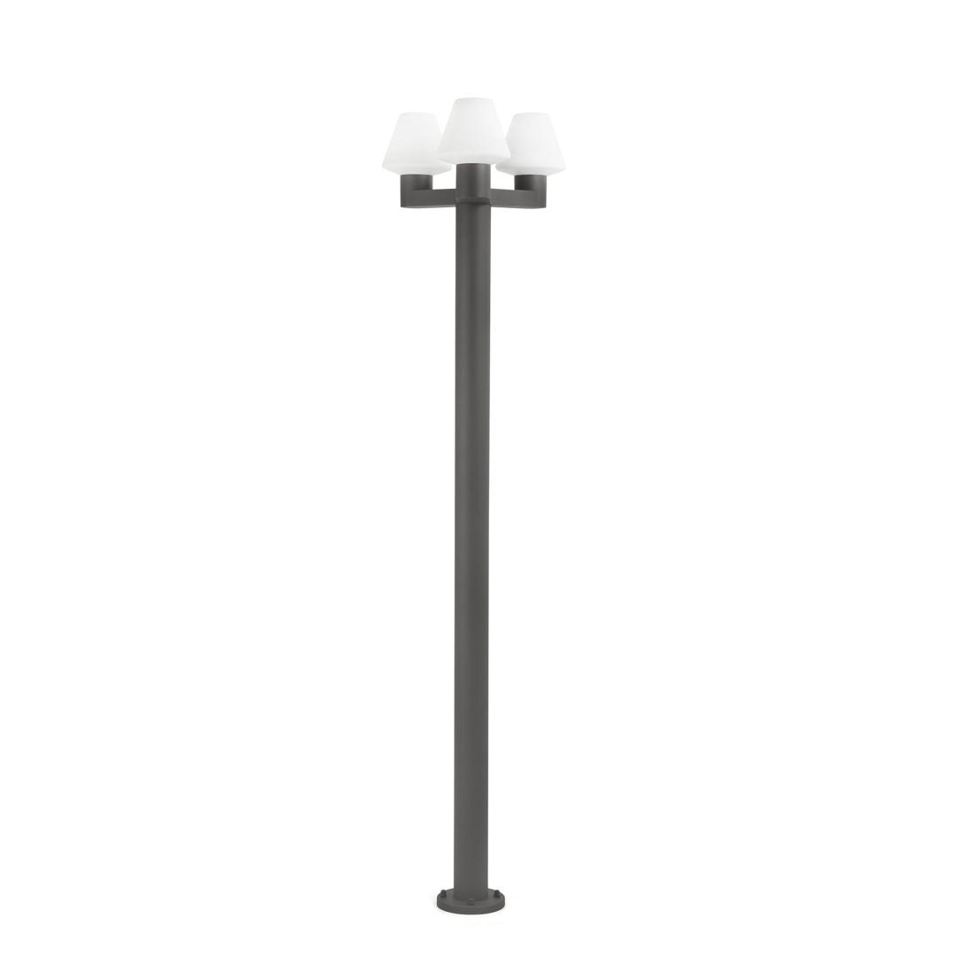 MISTU - это современный фонарный столб для наружного освещения, сделанный из алюминия и опалового поликарбоната. Это версия с тремя огнями.