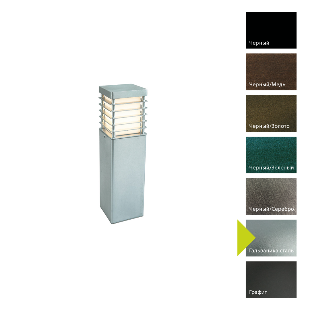 Очень большой ассортимент светильников из оцинкованной стали предлагает совершенно иной подход. В декоративном наружном освещении разработчики заинтересованы в этом металлическом аспекте, который дает им свежие идеи, связанные с тщательной защитой благодаря погружению в ванну с жидкостью. Сплав железа и цинка путем гальванизации получается даже прочнее, чем сама сталь, и защищает от всех видов травм, царапин, случайных ударов и коррозии. Часто наблюдается срок службы оцинкованного изделия около 25 лет. Цинк демонстрирует очень удобное поведение в различных атмосферах, скорость коррозии остается удовлетворительно низкой, однако в зависимости от суровости окружающей среды (город, побережье, промышленные загрязненные места ...)