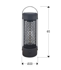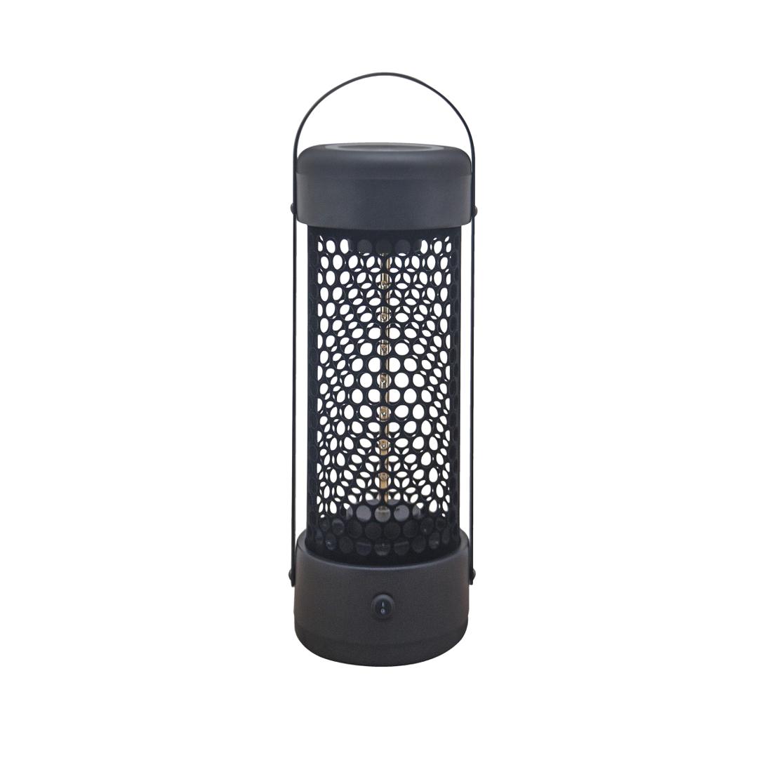 Уличный электрический обогреватель в виде фонаря. Изготовлен из пластика с металлическим покрытием черного цвета. Со специальной защитной сеткой и металлическим основанием. Галогенное отопление мощностью 1200 Вт. Кабель: 1,8 м. IP55.