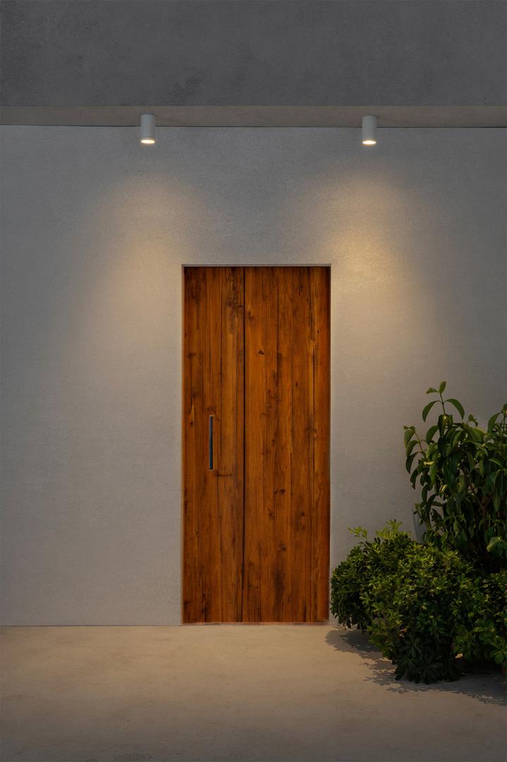 Белый потолочный светильник для наружного освещения из алюминия и прозрачного стекла. Этот потолочный светильник идеально подходит для освещения террас и подъездов .