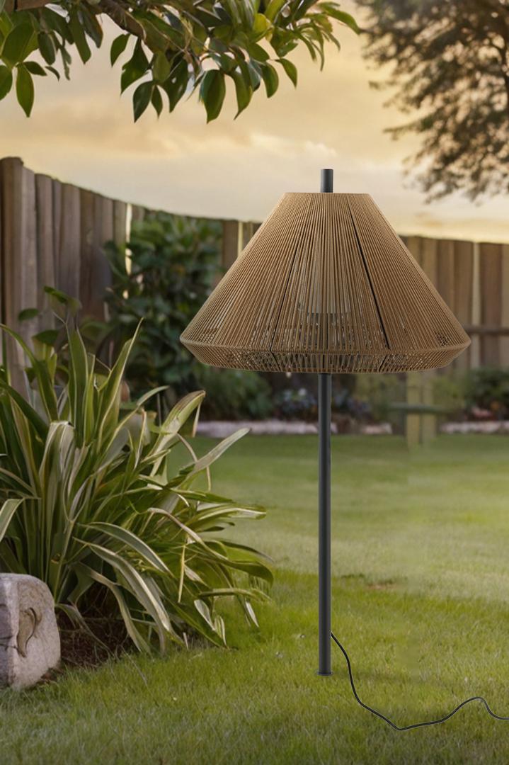 SAIGON — это коллекция дизайнерских светильников Nahtrang для наружного освещения. Он характеризуется простотой и чистым способом. Это колос с охристым оттенком высотой 1м. Абажур сделан из веревки, которая пропускает свет, создавая красивый световой эффект.