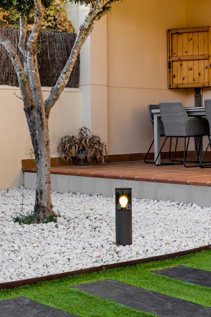 KILA — это коллекция наружного освещения из алюминия и стекла. Его дизайн идеально отделяет серую структуру полупрозрачного рассеивателя, позволяет видеть лампочку. Светильник-маяк темного дымчато-серого цвета идеально подходит для декоративного освещения садов. версия 40 см.