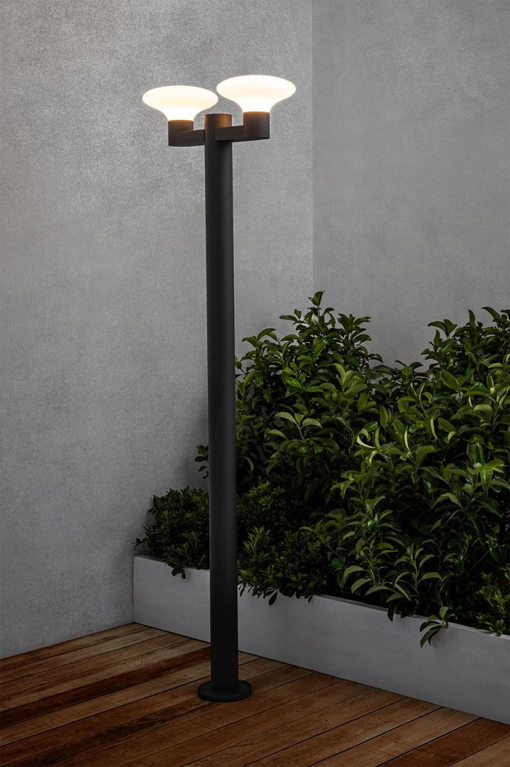 BLUB'S — это фонарь на мачте для наружного освещения, изготовленный из алюминия и опалового поликарбоната. Версия с двумя плафонами.