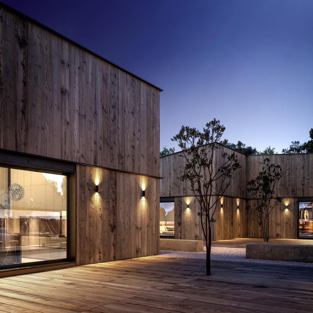 Светильники коллекции BERET выполнены в двухцветной отделке темного-серого цвета и дерева, что является идеальным сочетанием для света на открытом воздухе. Графитовая металлическая отделка контрастирует с передней панелью настенных светильников E27 и GU10 с эффектом дерева, органично дополняя внешний вид. Коллекция представлена в дых разновидностях прямоугольных форм с двумя лампами установленными в разных направлениях. Архитектурный свет компании Mantra поможет элегантно подчеркнуть идентичность здания или же придать ему больше оригинальности, кардинально изменяя общий вид в ночное время. Наружная подсветка поможет расставить акценты, описать контур фасада или залить светом необходимые участки. Рассеянный свет BERET создает приятную освещенность и идеально подойдет для зоны входа, балкона, паркинга, террасы, зоны для гриля или бассейна. Также сопровождающую подсветку можно разместить в коридорах, вдоль лестниц, ограждений.
