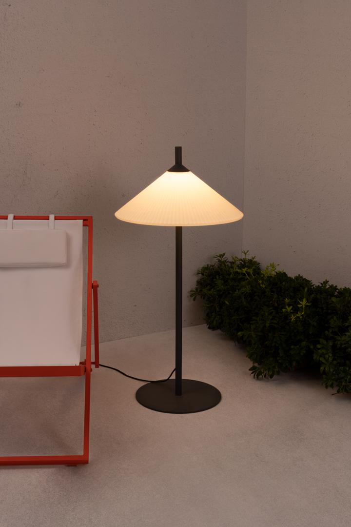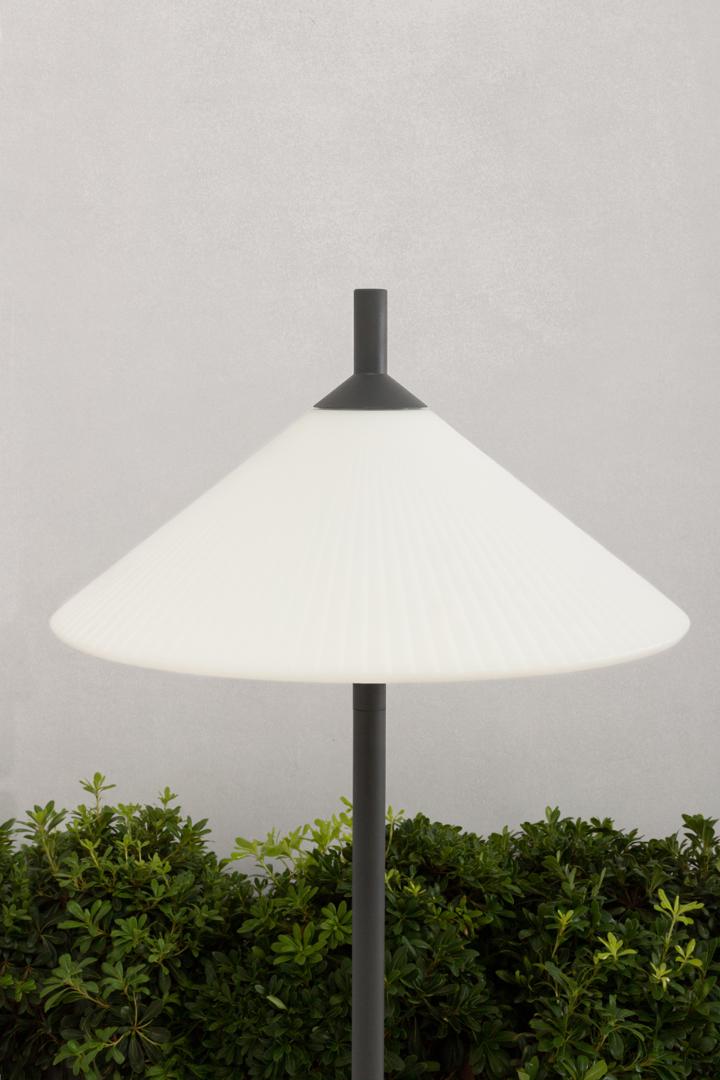 SAIGON - это набор дизайнерских ламп Nahtrang для наружного освещения. Для него характерны простота и чистые формы. Торшер для гостиной с матовым белым абажуром R55 толщиной 1 метр.