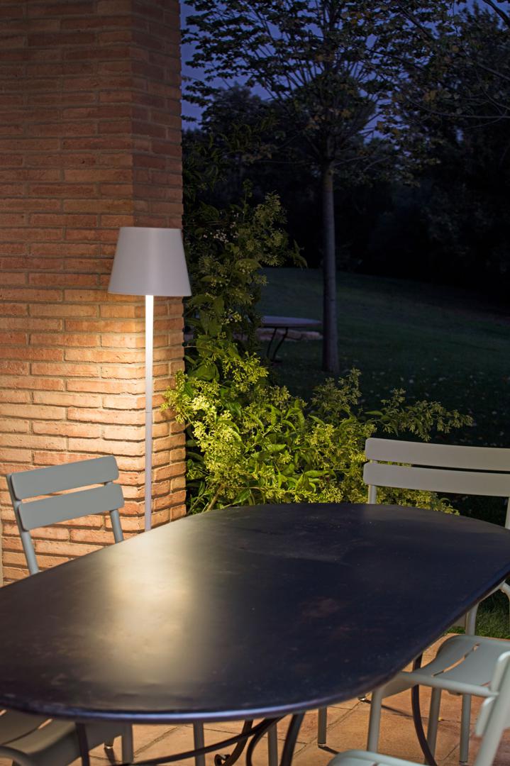 TOC-это переносной торшер для освещения садов и террас. Он имеет классический, но обновленный стиль. Эта оригинальная портативная лампа имеет легкое зажигание благодаря сенсорной системе.
