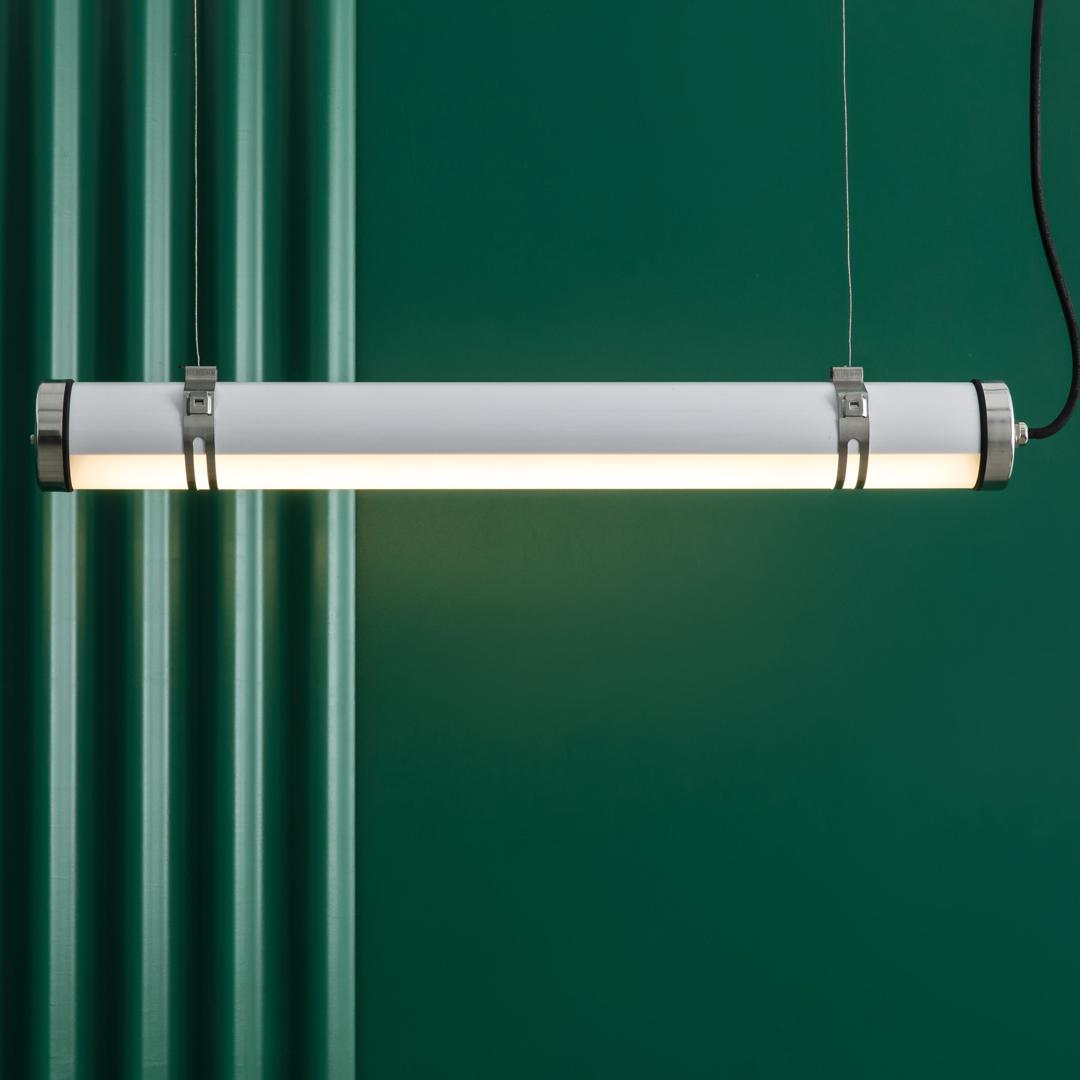 SCUBA - это подвесной светильник из нержавеющей стали, доступный в двух размерах. Он разработан для экстерьера, но также подходит для множества внутренних помещений. Он имеет IP66, что обеспечивает высокую защиту от дождя и твердых тел, а также ударопрочность IK10. В индустриальном стиле луч света проецируется через одну часть трубки. Вначале он устанавливается прямо на потолок, но в комплект не входит аксессуар в виде розетки (Ref. 75755).