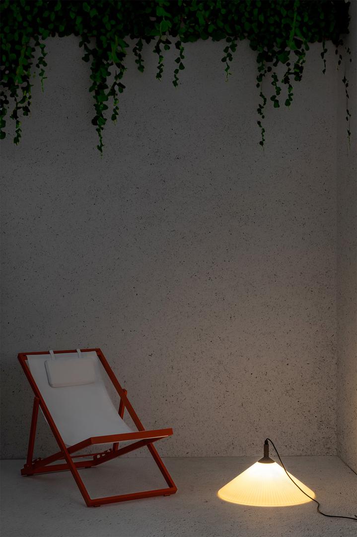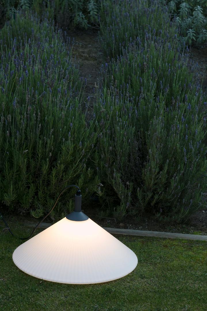 SAIGON - это набор дизайнерских ламп Nahtrang для наружного освещения. Для него характерны простота и чистые формы. Это белый матовый переносной подвесной светильник с абажуром R55.