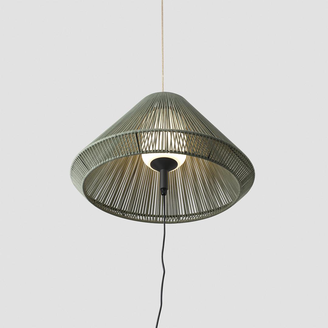 SAIGON — это коллекция дизайнерских светильников Nahtrang для наружного освещения. Он характеризуется простотой и чистым способом. Это переносная и подвесная лампа с оливково-зеленым абажуром C70.