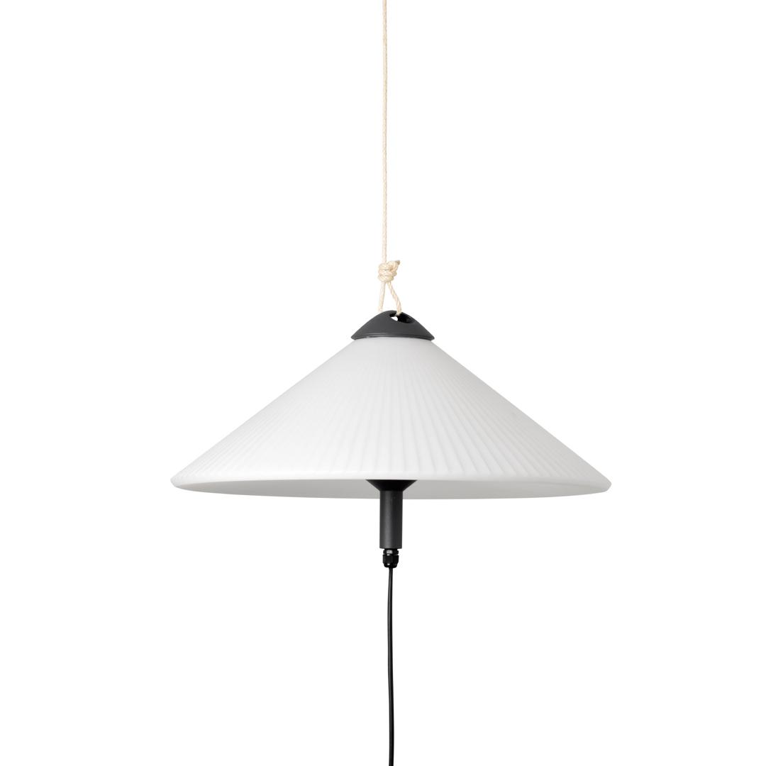 SAIGON - это набор дизайнерских ламп Nahtrang для наружного освещения. Для него характерны простота и чистые формы. Это переносной и подвесной светильник с абажуром матового белого цвета с люверсами R55.