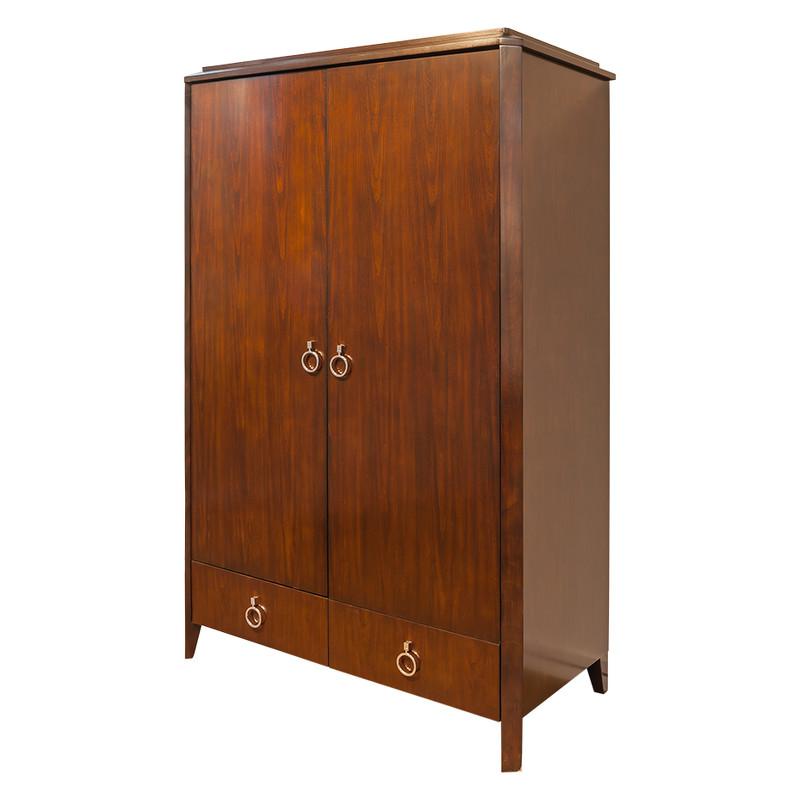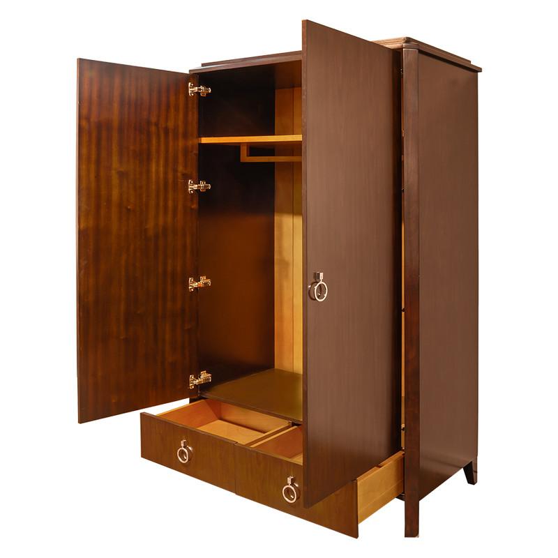 Гардероб в стиле неоклассика от итальянского бренда Fratelli Barri. Модель имеет 2 распашные дверцы и 2 ящика снизу. Классический вариант для просторной европейской спальни. Каркас — массив дерева и высококачественная МДФ высокой плотности, отделка — натуральный шпон вишни. Все выдвижные ящики снабжены направляющими. Ручки хромированные. Модель принадлежит к коллекции мебели Mestre в стиле неоклассика от Fratelli Barri. Здесь вы можете найти мебель для гостиной, столовой и спальни: сотни вариантов доступны для комбинации друг с другом.