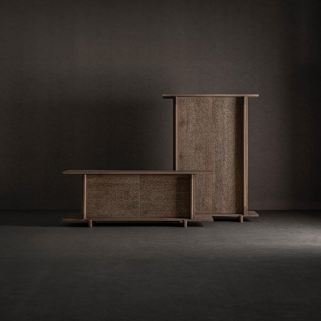 Современный шкаф. Изготовлен из мангового дерева, светло-коричневого цвета.